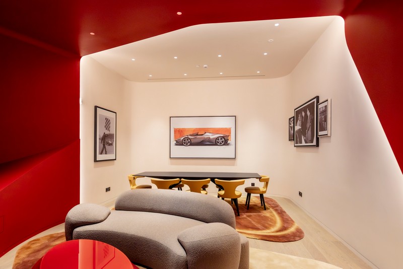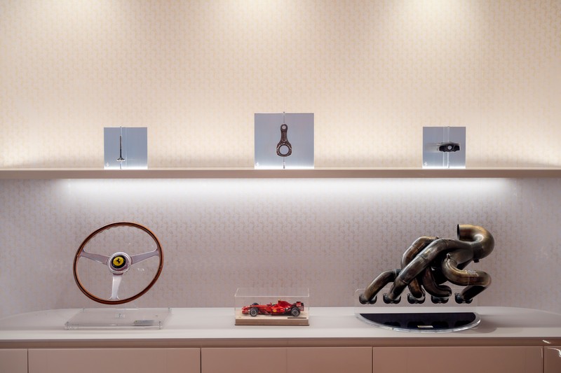 Materiali di alta qualità, attenzione ai dettagli ed allestimenti curati riflettono le caratteristiche delle vetture Ferrari, mentre alcuni sottili richiami di design evocano i concetti di velocità, precisione e innovazione. La tecnologia all’avanguardia si integra perfettamente negli spazi, permettendo ai visitatori di interagire con le vetture in modo dinamico e coinvolgente.
