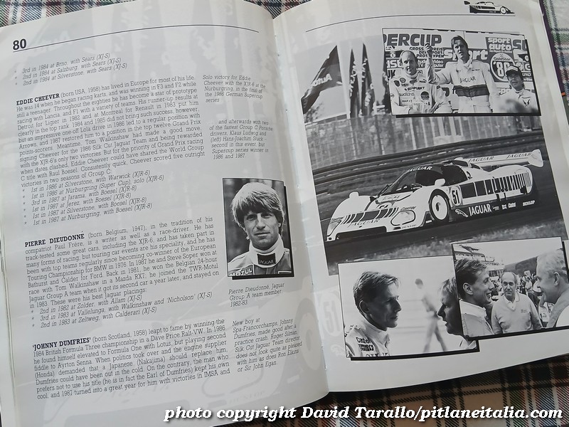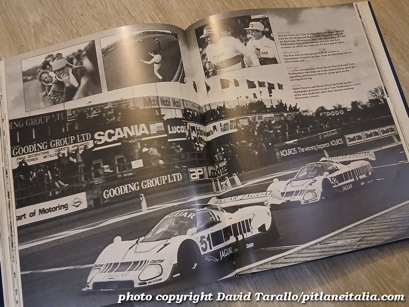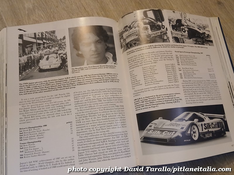 Tutte queste novità – in primis il successo nel WEC – esigevano quello che oggi chiameremmo un instant book e nell’autunno del 1987 Andrew Whyte si mise al lavoro. Nei primi mesi del 1988 uscì – pubblicato ancora da Haynes – Jaguar World Champions. Ma se instant book fu, si trattò di un instant book all’inglese, nel senso migliore dell’espressione: in quegli anni i britannici erano maestri nell’editoria specializzata nel motorsport e Jaguar World Champions è tutt’altro che un volume raffazzonato e concepito per seguire giusto l’onda del momento. E’ un libro di oltre duecento pagine, colme di testo e di foto, che può essere considerato un’integrazione di Jaguar Sports Racing & Works Competition Cars. Analisi tecnica e sportiva, approfondimento dei regolamenti e ritratti di progettisti, manager e piloti: c’è tutto e naturalmente non manca una parte consacrata alla partecipazione di Jaguar al campionato IMSA. Il libro inizia rifacendosi alle due annate precedenti, probabilmente per non lasciare a bocca asciutta chi non possedeva il grosso volume di riferimento.