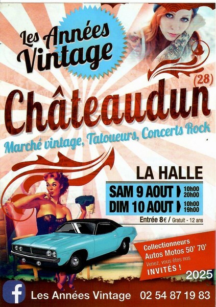 Les années Vintage è una serie di manifestazioni storiche (mercato, raduno auto e moto…) che si svolgono in Francia. Il prossimo evento sarà a Châteaudun (Eure-et-Loir), sabato 9 dalle 10 alle 20 e domenica 10 agosto dalle 10 alle 19.