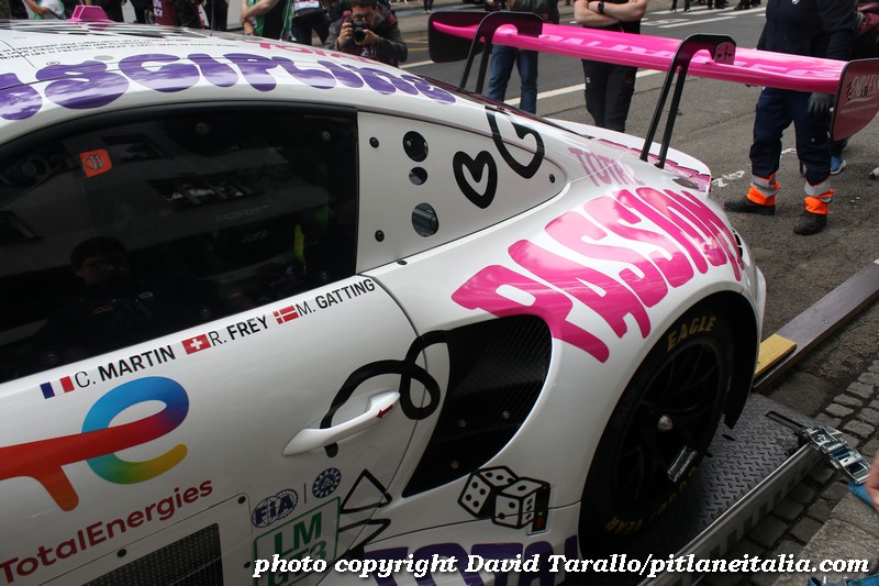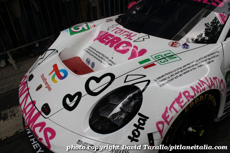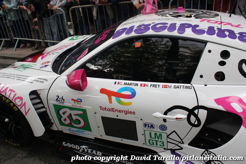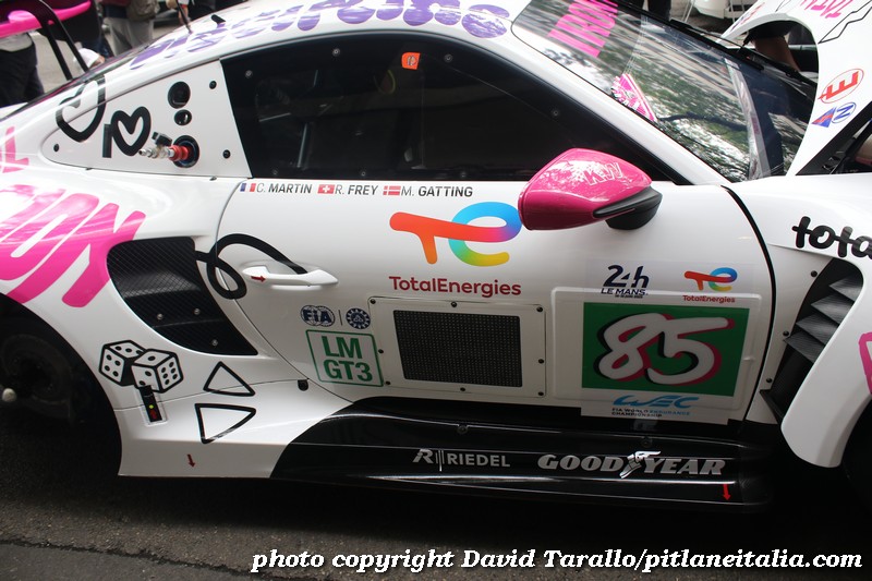 Nulla di originale per questa vettura che sarà pilotata da Michele Gatting, Rahel Frey e da Célia Martin, alla sua prima partecipazione a Le Mans. Ormai il fenomeno delle Iron Dames ha guadagnato un’ottima presenza sui media, grazie soprattutto al loro essere donne. Non è questa una sorta di discriminazione alla rovescia? Sostanzialmente le Iron Dames sono delle ragazzotte ricche che se non fossero di sesso femminile con tutta probabilità non diciamo che guiderebbero l’autobus Le Mans-Saint Saturnin, ma sarebbero ben nascoste in qualche categoria minore. Come molti piloti uomini, del resto. Ma tant’è, dei piloti-donna fanno ancora notizia, a riprova del fatto che la parità sparisce quando fa comodo per far promozione e muovere capitali.