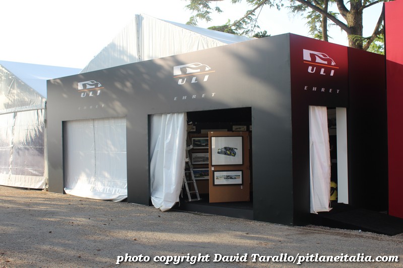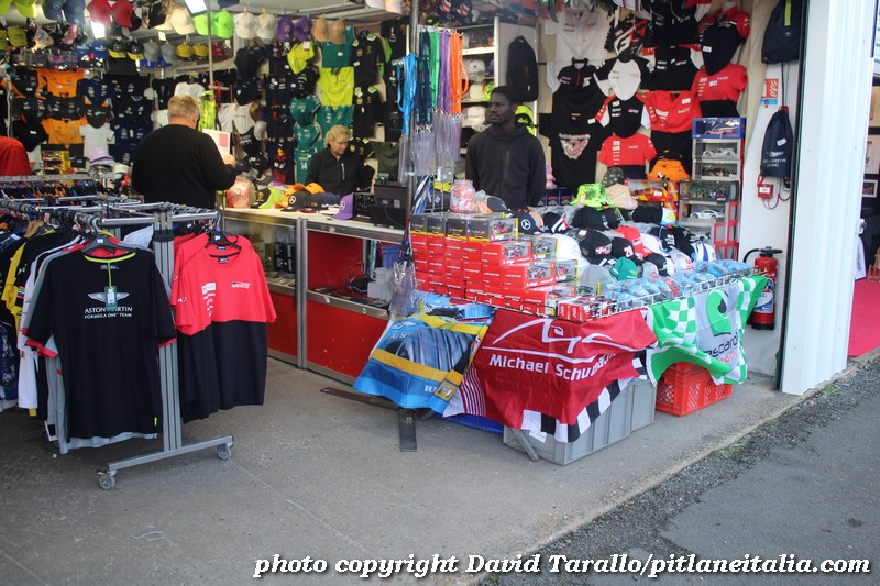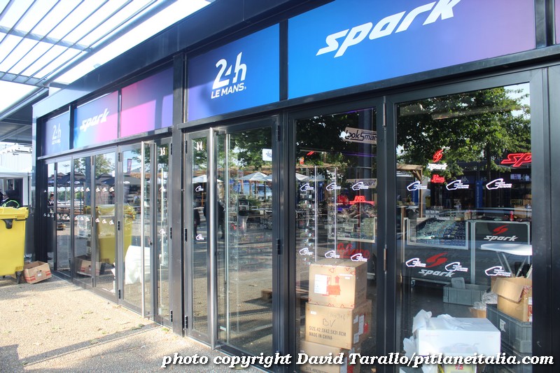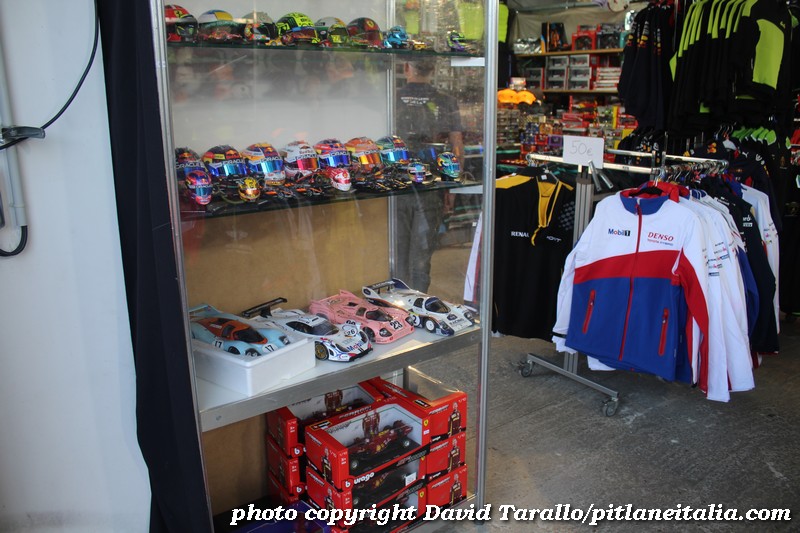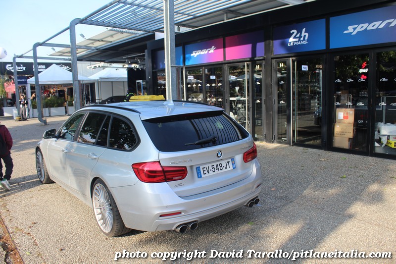 Come accade da anni, il villaggio non offre ai collezionisti attrattive particolari, a meno di non essere appassionati di roba tipo Spark e compagnia. La boutique ufficiale nella piazzetta non è ancora aperta. Davanti all’entrata è parcheggiata una bella BMW Alpina B3 Biturbo, ovviamente targata “13”. Chiuse per il momento (è troppo presto) anche Peugeot Sport e Ferrari. Al di là del paddock, sotto le tribune, si stanno allestendo gli altri spazi, con i venditori abituali. Basta una rapidissima occhiata per rendersi conto che non varrà la pena soffermarcisi troppo.