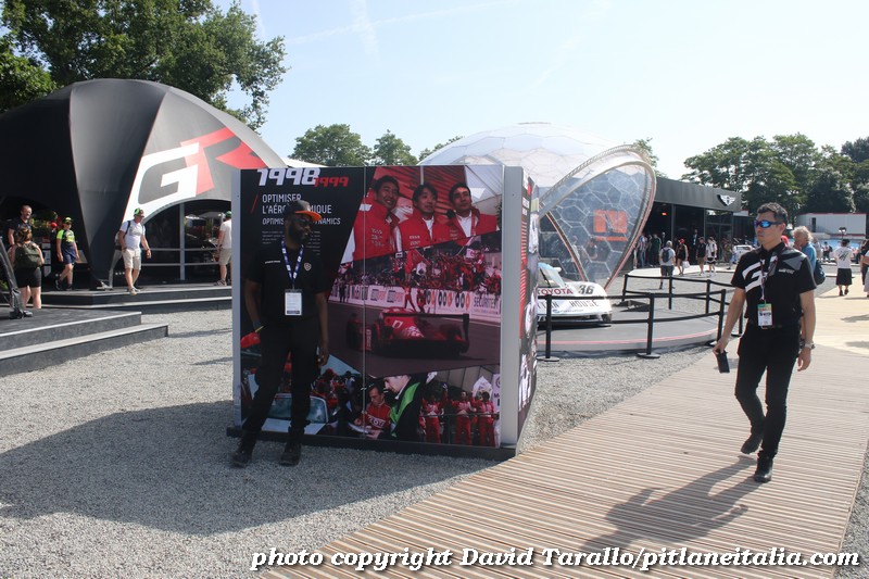 E’ aperto il villaggio dei costruttori e dei team: nel quarantennale della prima partecipazione di Toyota alla 24 Ore di Le Mans, lo spazio del Gazoo Racing è particolarmente ampio e ricco di interesse. E’ arrivata tra l’altro una delle due 85C-L Gruppo C che parteciparono all’edizione 1985 e sembra un grosso Provence Moulage.