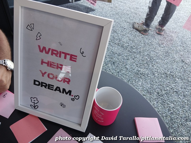 Dicevamo del fenomeno di costume, con tutto un florido merchandising a latere e iniziative più o meno naif, come quella di lasciare tanti post-it rosa appicciati a una delle finestrone dello stand commerciale. Che teneri. Abbiamo detto anche noi la nostra, d’altra parte se ci istigano, questo è.