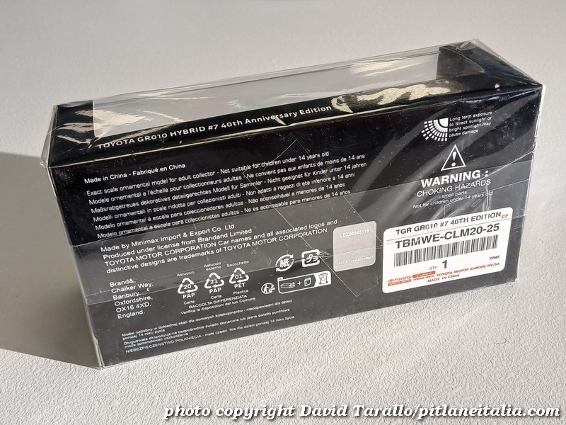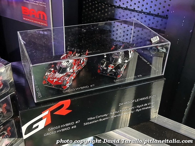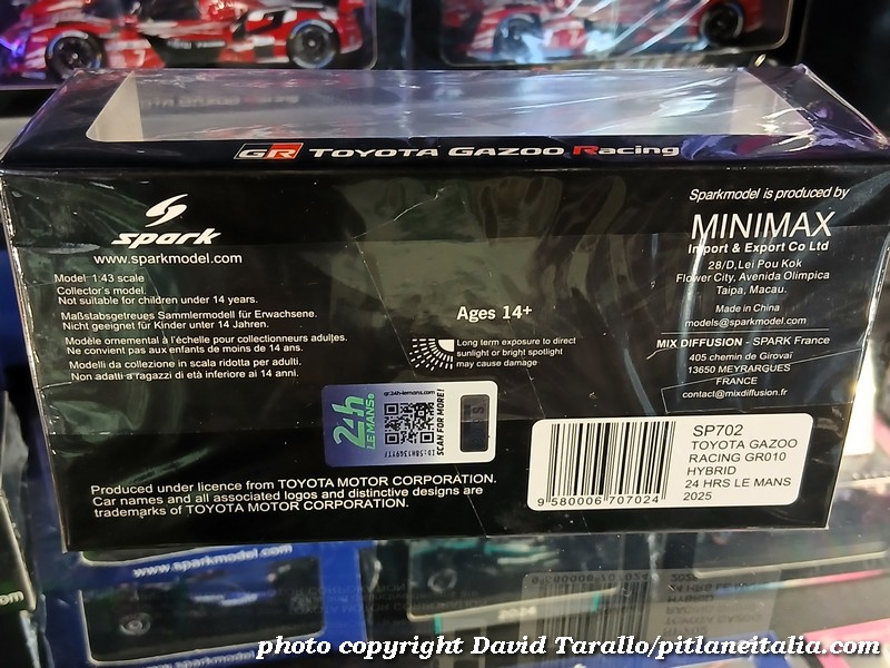 In un articolo dell’8 giugno scorso (https://pitlaneitalia.com/2025/06/08/24-ore-di-le-mans-2025-spark-e-dintorni/) avevamo segnalato l’uscita della Toyota GR010 in livrea speciale rossa della 24 Ore di Le Mans 2025, modello Spark diffuso dalla divisione merchandising di Gazoo Racing. Il modello (catalogo TBMWE-CLM20-25) è posto in vendita a €145 nelle reti di vendita ufficiali Toyota ed è un’edizione limitata a 500 esemplari numerati. Fin qui tutto bene.