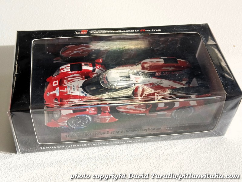 Se non che, Spark ha pensato di far uscire nella sua linea “SP”, un modello identico, sicuramente in serie limitata ma non numerata, con confezione diversa e venduto solo nei propri negozi in circuito. Il prezzo, rispetto alla serie Gazoo Racing, è lo stesso: € 145, probabilmente per non far concorrenza a chi ha commissionato la serie da 500 pezzi. Spark, poi ha realizzato anche un coffret con due GR010: la rossa, quindi, e anche la nera. Prezzo € 250.