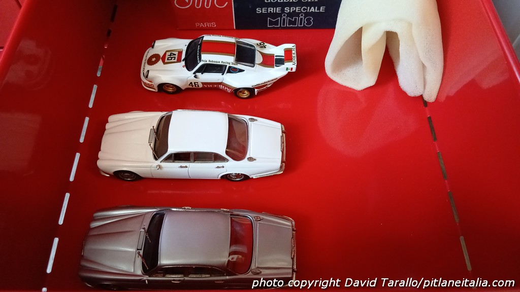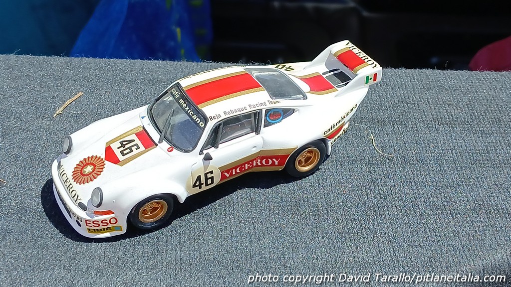 La foto “di rito”, come direbbe qualche innamorato del frusto linguaggio giornalistico, la farò con un’altra rarità da fissati della Le Mans terrigna: un MRE in resina che riproduce la Porsche 911S numero 73, tra le non partite all’edizione del 1975. La Viceroy invece – lo saprete benissimo – è del ’74. Un modello uscito nel 1977, con tanto di ruote Solido, un po’ strano e incompleto nella decorazione e in qualche altro dettaglio1.