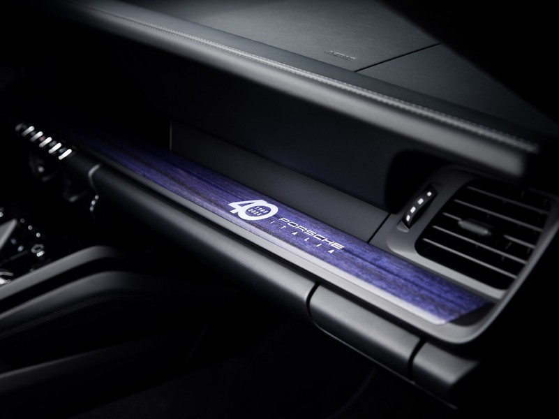 Entrambi i montanti centrali recano una placca celebrativa su cui spiccano il numero ‘40’, gli anni 1985 e 2025 e le parole ‘Porsche’ e ‘Italia’– un omaggio al 40° anniversario di Porsche Italia. Tutti questi elementi sono in rilievo, così da poter essere percepiti anche al tatto.