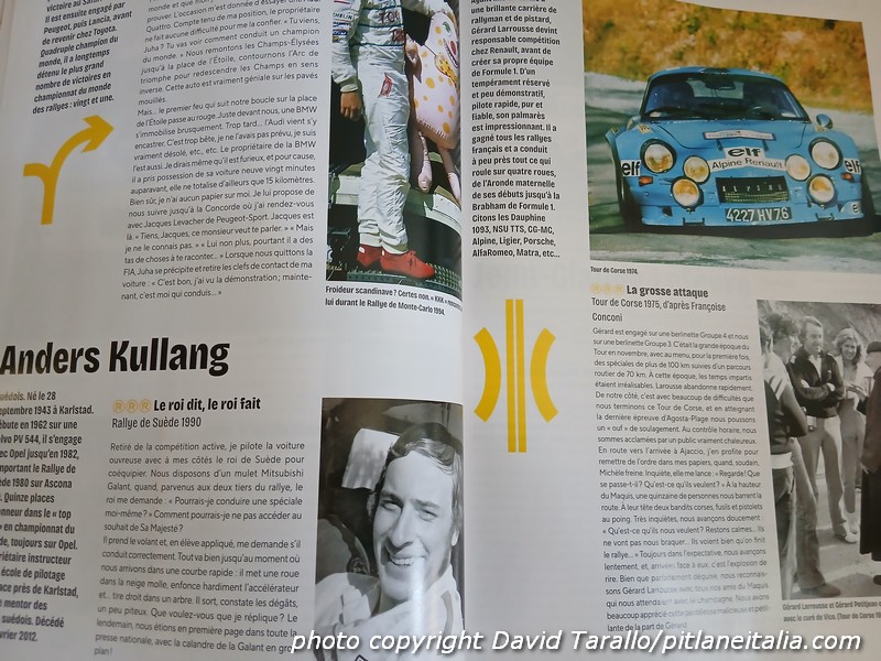 Dopo una prima apparizione l’anno scorso, viene di nuovo diffusa in Francia questo bel fascicolo a tema rallystico. Pubblicato nella serie Rétro Mécanique, Les grands années Rallye non ripercorre la storia della disciplina nel modo abituale, ma lo fa dando voce a tantissimi personaggi che hanno calcato le scene delle competizioni dagli anni ’50 agli anni ’90. Il rally del passato erano resi affascinanti da imprevisti e peripezie talvolta rocambolesche e gli autori – Françoise Conconi, Jean-Michel Fabre e Michel Morelli – non hanno esitato a moltiplicare le fonti di aneddoti, ricordi e storie incredibili raccontate da chi quegli anni li ha vissuti in prima persona, come pilota, certo, ma anche come navigatore o fotografo, giornalista, preparatore, organizzatore. In oltre 160 pagine ce n’è per tutti i gusti, in un prodotto editoriale dal rapporto qualità-prezzo imbattibile: € 15,90 sul territorio francese. A ciò si aggiunga che l’apparato fotografico è eccezionale, con immagini originali, belle e inedite di auto anche poco conosciute e scene di “vita quotidiana” dell’ambiente rallystico di un tempo ormai lontano. Uscite come questa non possono non ispirare un impietoso confronto con l’offerta sistematicamente scarsa e mediocre dell’edicola italiana. Del resto il livello dell’editoria di un qualsiasi paese rispecchia quello dei suoi lettori – e viceversa.