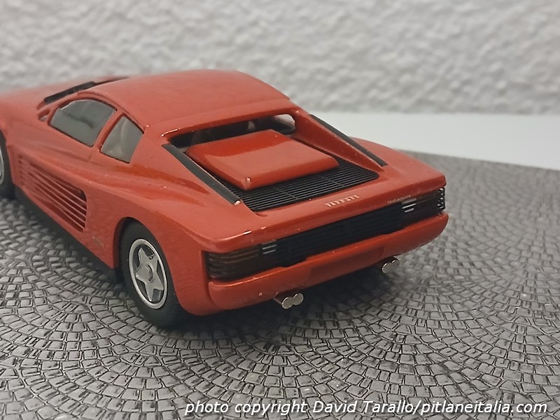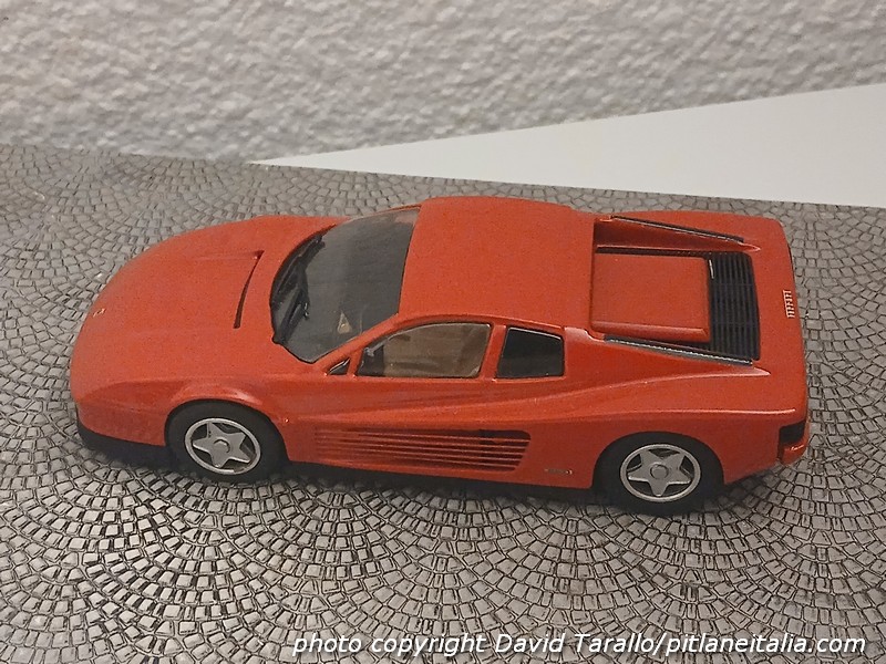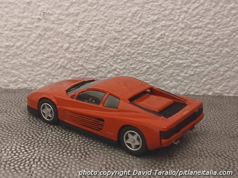 Nell’ambito dell’1:43, come si può facilmente immaginare, l’arrivo di questa vettura scatenò gli appetiti dei produttori. Fu velocissima – come suo costume – Record MRF, che presentò il kit in resina della Testarossa già alla fine del 1984 (nel 1985 uscì poi la versione montata, peraltro semplificata al massimo nelle finiture, nello stile degli ultimi factory built Record).