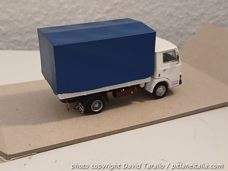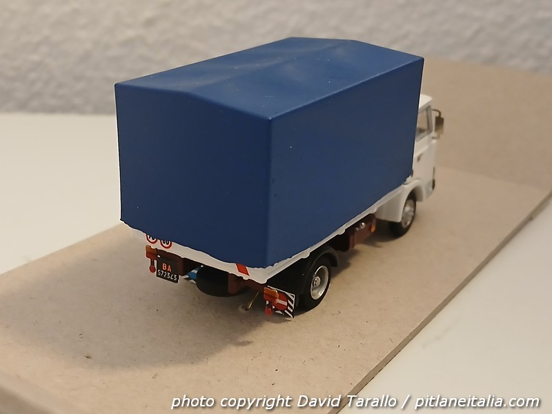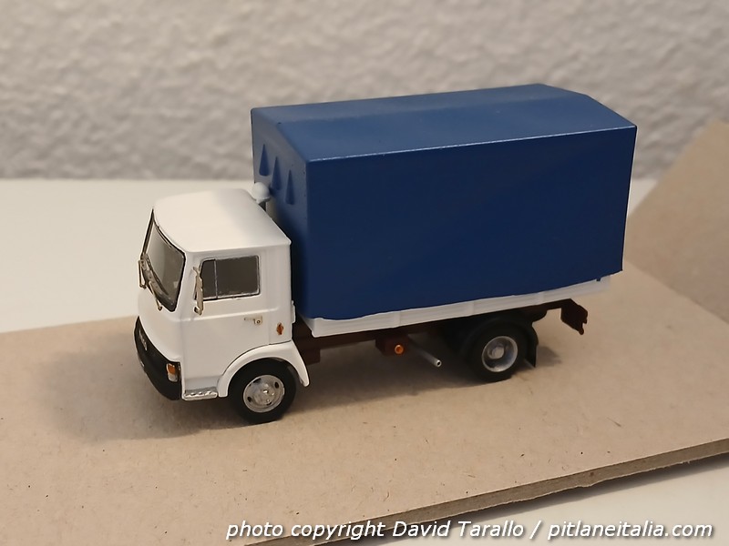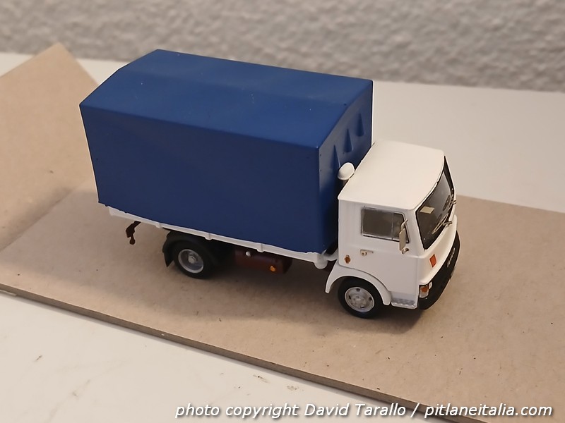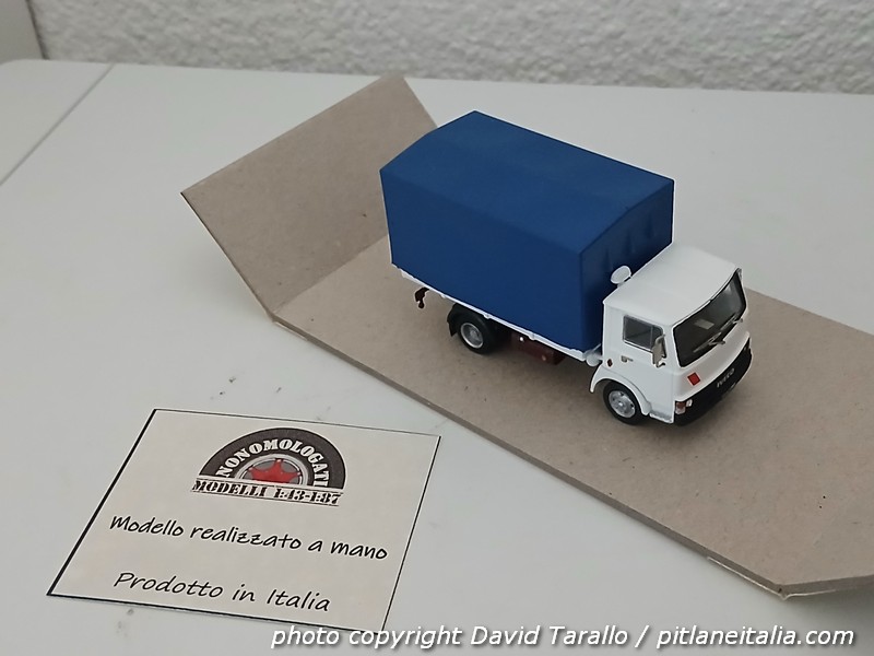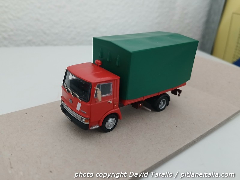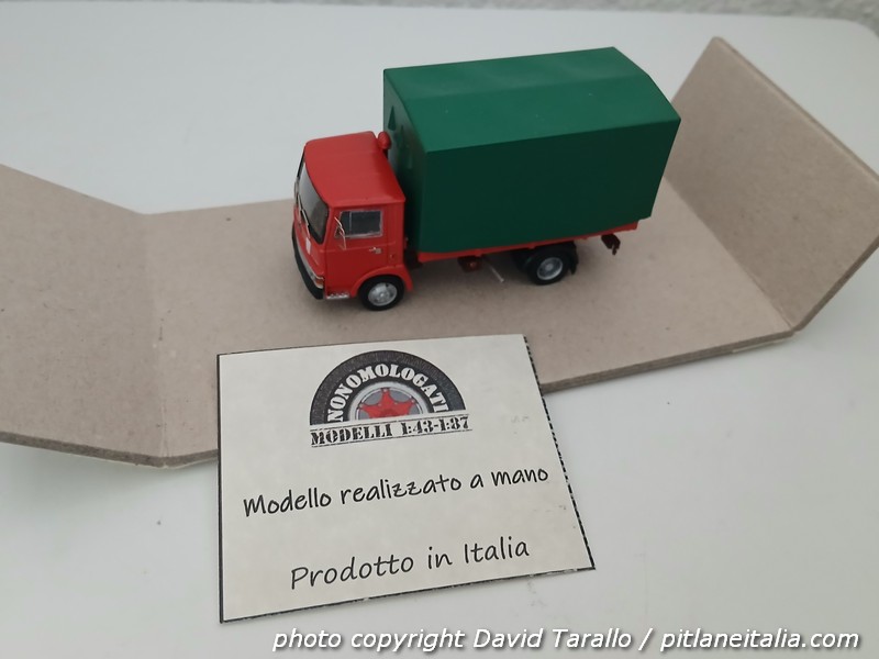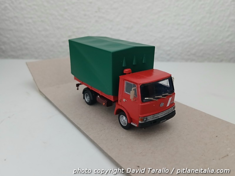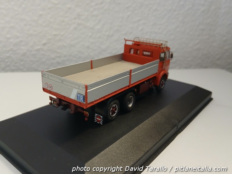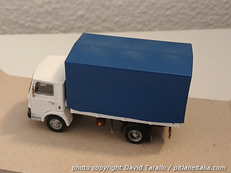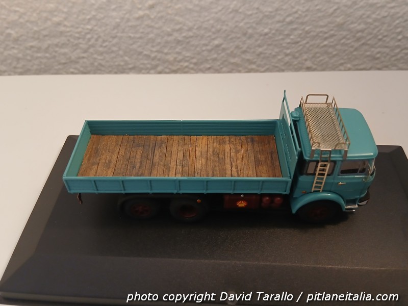 Per quanto riguarda i mezzi più grossi, è uscito un Fiat 619 a tre assi nel caratteristico “azzurro farfalla” che molti ricorderanno anche sulle vetture stradali, come la 500R, la 126 o la 127. L’azzurro è stato realizzato da una carrozzeria Iveco, così come il rosso del telaio. Il 619 di nonomologati si caratterizza per la presenza del bagagliaio fotoinciso sul tetto e per il piano di carico rivestito con effetto legno. Particolare cura è stata dedicata al montaggio dei vetri, posizionati uno ad uno con l’aiuto del crystal-clear.