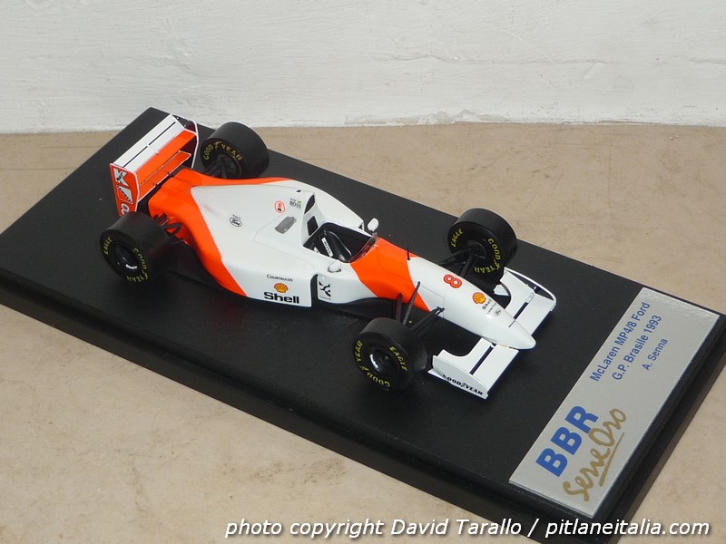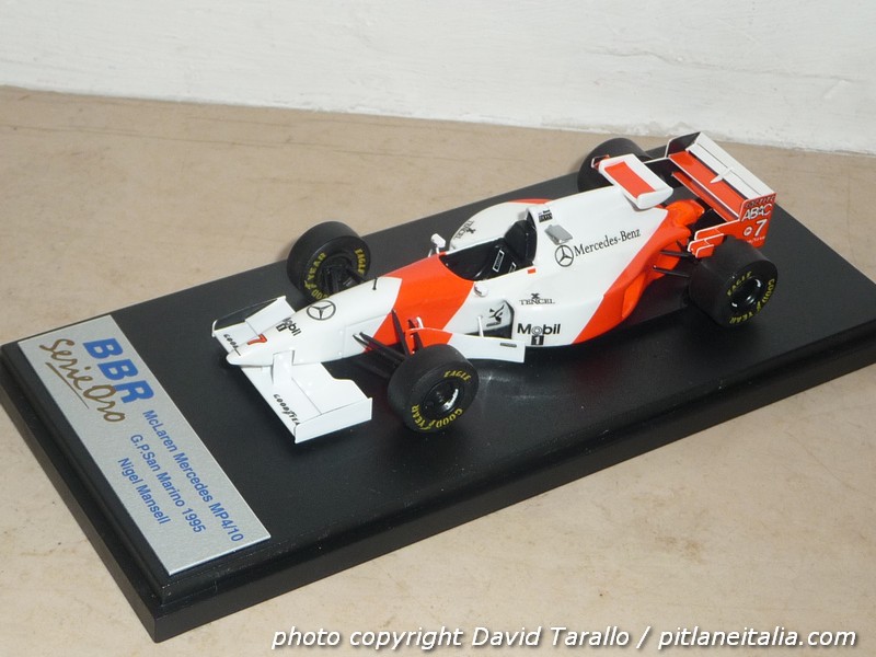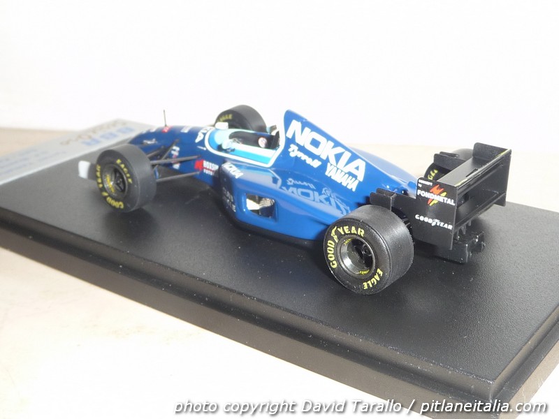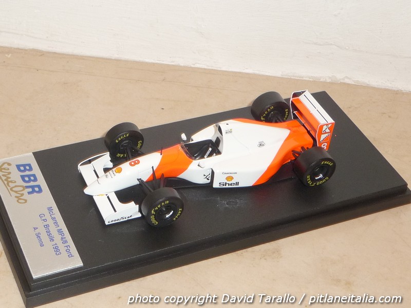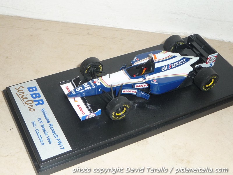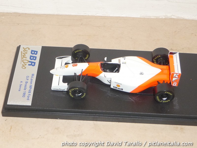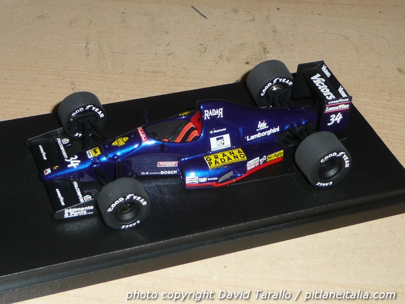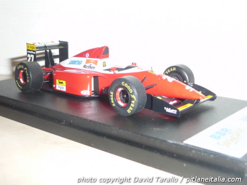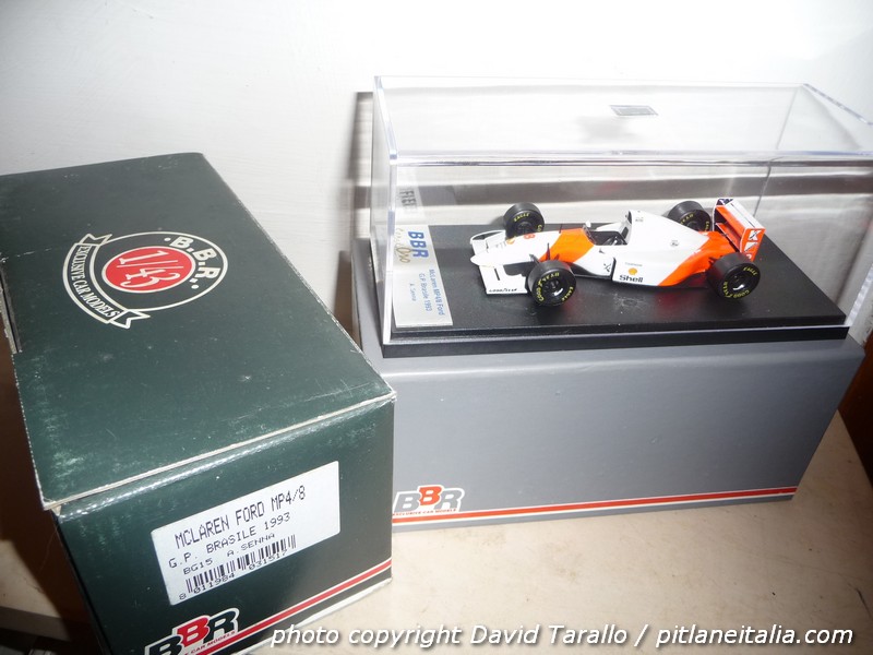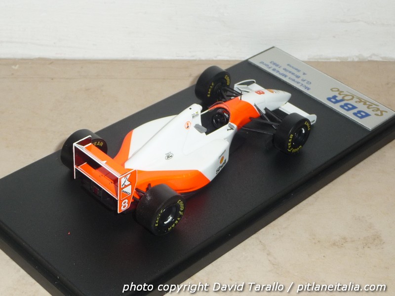 BBR ci mise del tempo prima di mettere le mani sulla Formula 1. Negli anni ’90 l’azienda di Saronno produceva anche dei kit e le Formula 1, piano piano, riempirono la gamma delle scatole di montaggio. Di ogni referenza veniva commercializzato anche il factory built, cosa piuttosto complessa quando si tratta di monoposto, per la loro intrinseca fragilità costruttiva. Si dovette quindi trovare la quadratura del cerchio assicurando i modelli alla loro base senza rischiare disastrose rotture nei lunghi viaggi intorno al mondo. La cosa venne concepita a dovere, perché non mi risulta che le Formula 1 di BBR ponessero particolari problemi nelle spedizioni. Si trattava di prodotti di alta gamma che all’epoca non avevano concorrenti: Tameo, almeno ufficialmente, non offriva modelli montati (lo aveva fatto negli anni ’80 e avrebbe ripreso negli anni Duemila), Meri Kits men che meno e, a parte qualche marchio francese, in giro non c’era molto. Chi voleva un bel modello di una Formula 1 d’attualità doveva arrangiarsi. I BBR quindi furono ben accolti, almeno da un certo tipo di pubblico facoltoso. Le confezioni comprendevano ormai la vetrinetta in plexiglas con la scatola in cartone più grande. I soggetti erano quelli più conosciuti (Ferrari, Williams, McLaren) ma nella produzione appare anche qualche sorpresa come la Lambo 291 del 1991 progettata dall’ingegner Forghieri.