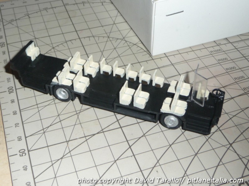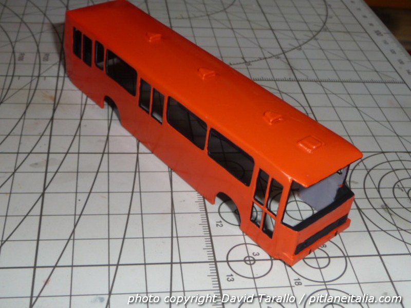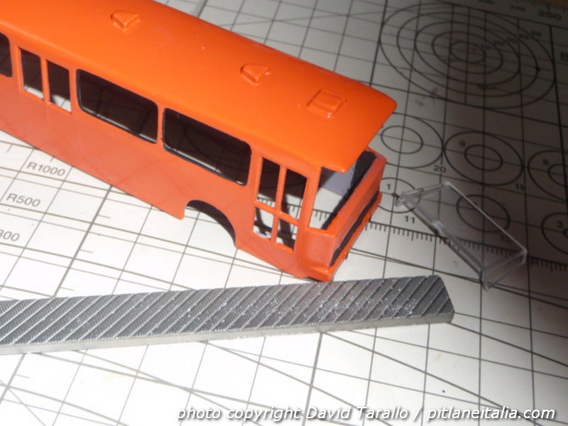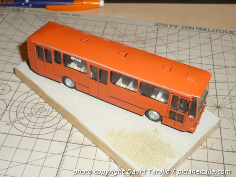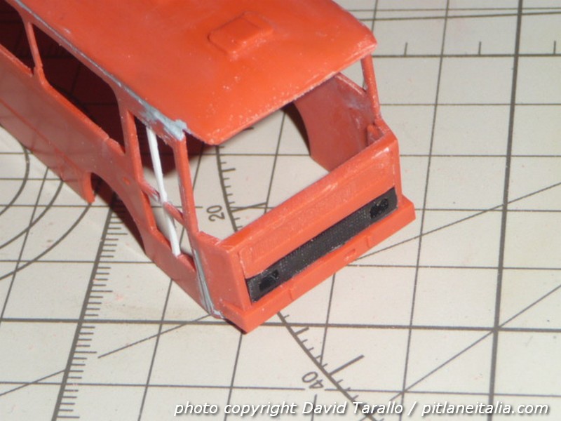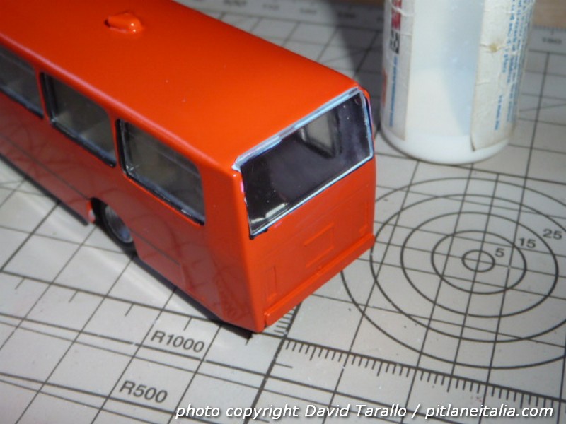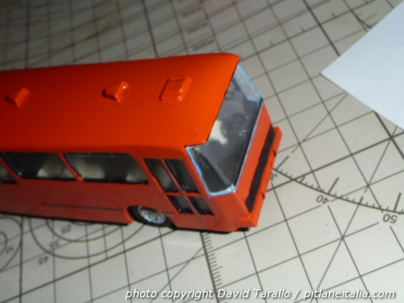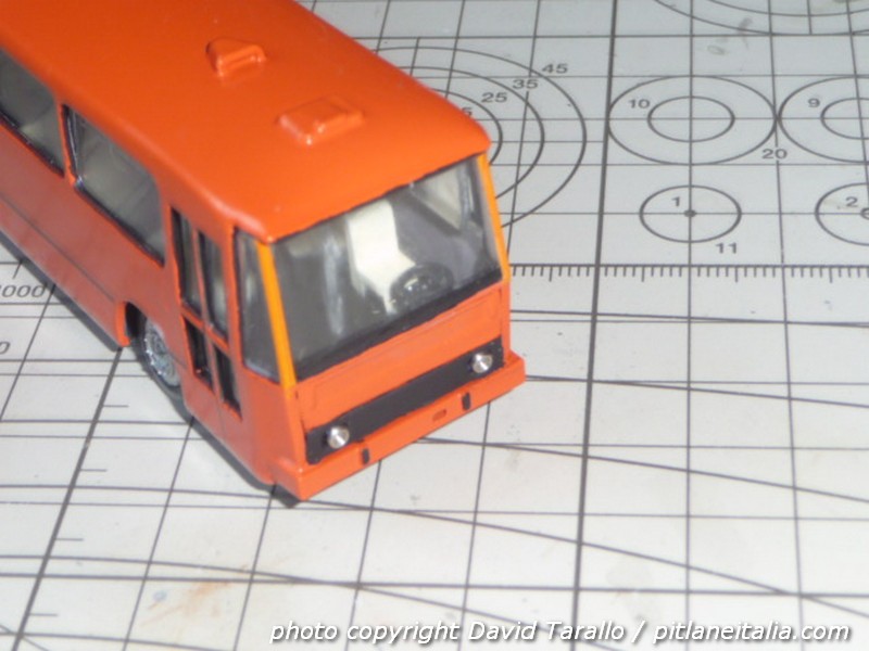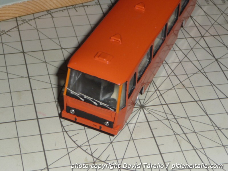 Ancora più divertenti furono il montaggio e la rifinitura, per la quale usai anche alcuni aggiuntivi, come dei tergicristalli piccoli di Tameo, che si adattavano bene alla scala dell’autobus.