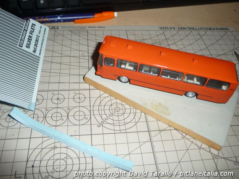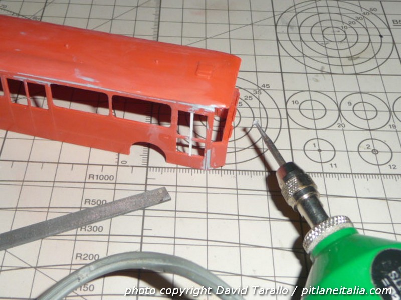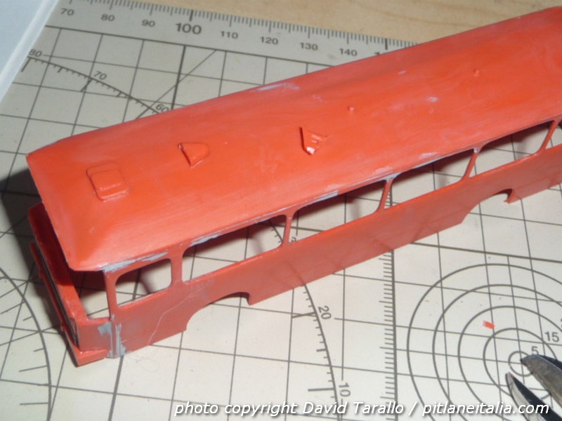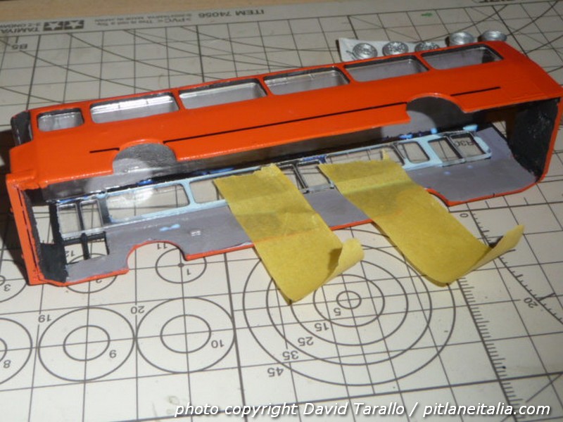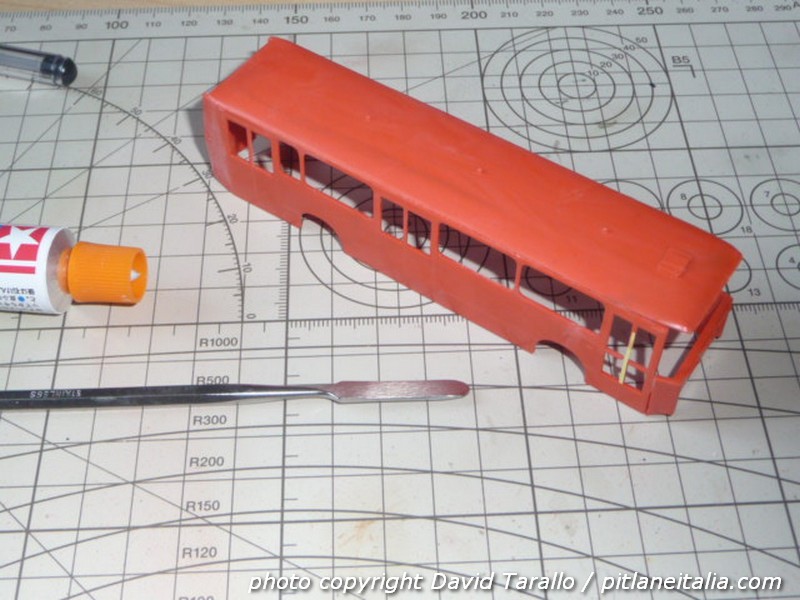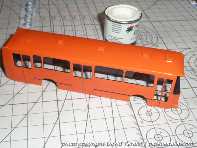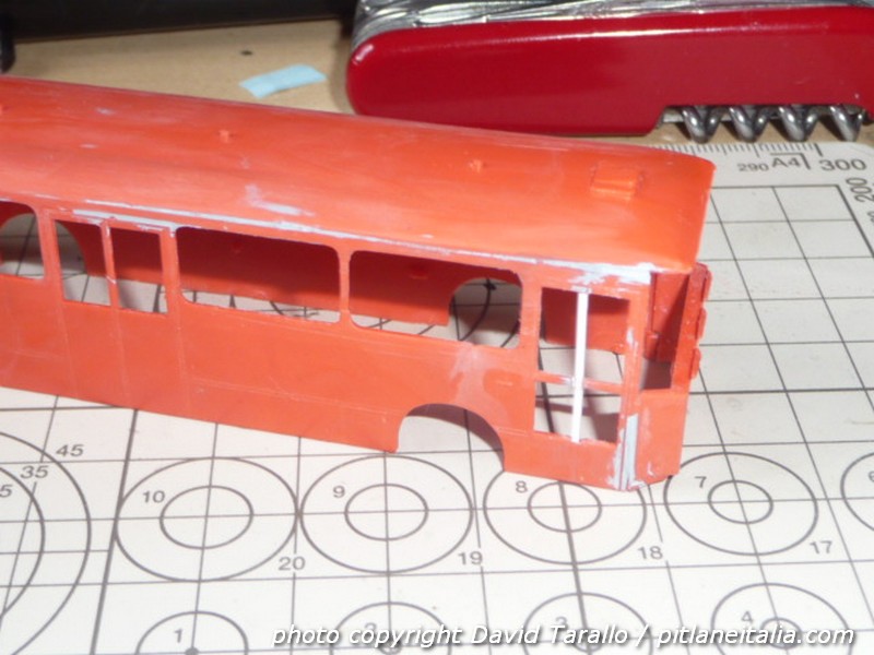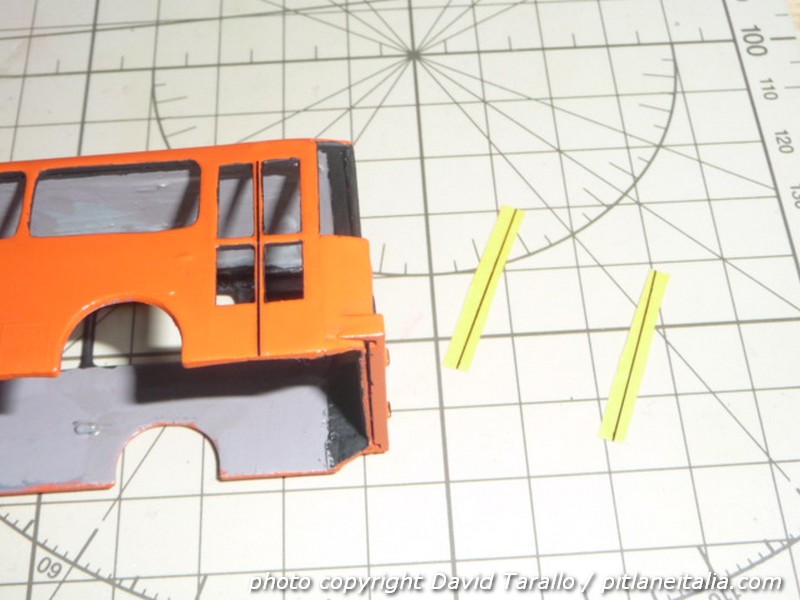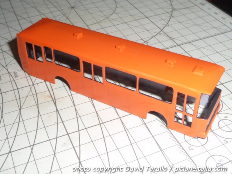Ancora più divertenti furono il montaggio e la rifinitura, per la quale usai anche alcuni aggiuntivi, come dei tergicristalli piccoli di Tameo, che si adattavano bene alla scala dell’autobus.