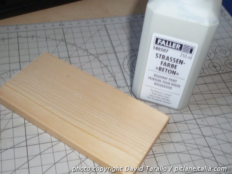 Il tutto si completò con la sistemazione del modello su una basetta di legno, con tanto di asfalto fermodellistico e di mini-transenna, giusto per dare un po’ di ambientazione all’insieme. Conservo ancora quel modello, che ha affrontato bene gli anni, segno che i materali di base – e anche quelli utilizzati per il montaggio – erano validi.