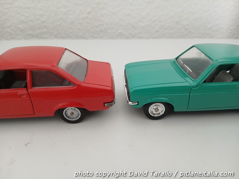 La Escort Mk.II, uscita di produzione nel 1981, fu poi ripresa più volte e la ritroviamo ad esempio nella gamma Verem, con una leggera differenza di stampo che si può notare solo smontando il modello: dietro il paraurti, infatti, il Solido ha un’unica grossa “bocca”, mentre il Verem presenta un dente al centro dell’apertura, forse come rinforzo.