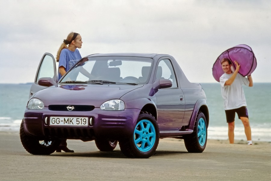 Dieci anni dopo, la piccola Opel Corsa viene scelta come piattaforma per la Scamp del 1993. Con la sua maggiore altezza da terra, la Scamp può essere considerata il precursore dei moderni B-SUV. La concept car offriva spazio per un massimo di quattro persone. I sedili posteriori e il vano di carico erano attraversati da un pratico tetto ribaltabile completamente apribile. L’approccio SUV era sottolineato anche da speciali dispositivi nel bagagliaio che consentono il trasporto sicuro di due biciclette o altre attrezzature sportive.