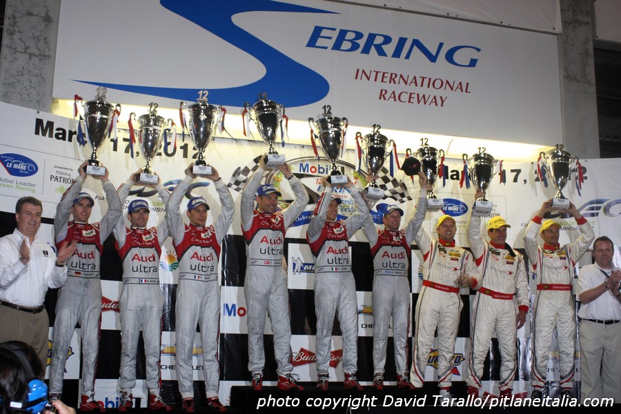 Ricordiamo che il primo appuntamento del nuovo corso fu la 12 Ore di Sebring, nel marzo 2012, un’edizione eccezionale che vide gli schieramenti del FIA-WEC e dell’ALMS correre insieme, seppure con punteggi separati. Conquistarono la vittoria Capello/Kristensen/McNish con l’Audi R18 RDI. Vi proponiamo una gallery un po’ inusuale di quella memorabile 12 Ore della Florida.