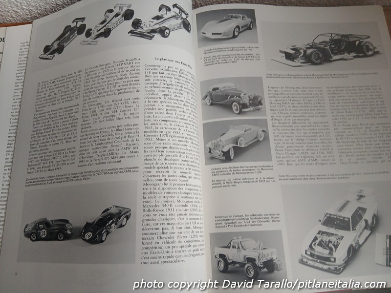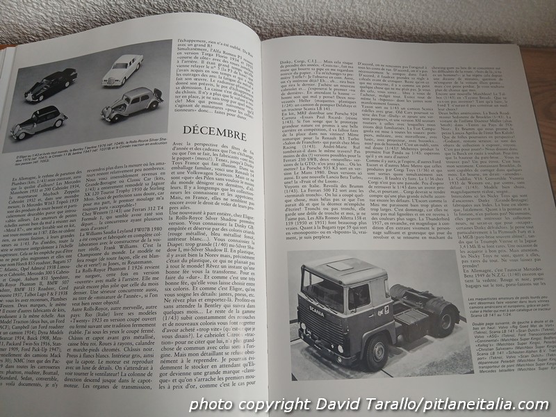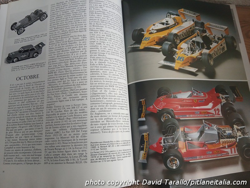 Ma il motivo di interesse dell’Année Automobile des modèles réduits risiedeva in tutto il resto del volume: quasi 170 pagine di attualità, con un riassunto molto completo e dettagliato di tutto ciò che era uscito nel corso del periodo tra il giugno 1980 e il maggio 1981. E c’era di più: come se si trattasse di una maxi-rivista, i curatori avevano aggiunto degli ampi articoli tematici di approfondimento: troviamo quindi uno speciale su Western Models, una retrospettiva sulla borsa di scambio di Windsor, la cui prima edizione risaliva al 1971, recensioni di modelli (la Bugatti T50 di Pocher, la Renault RE20 di Tamiya…) e via di seguito. In questa prima esperienza non mancarono gli errori e le incoerenze ma il libro venne accolto con interesse.