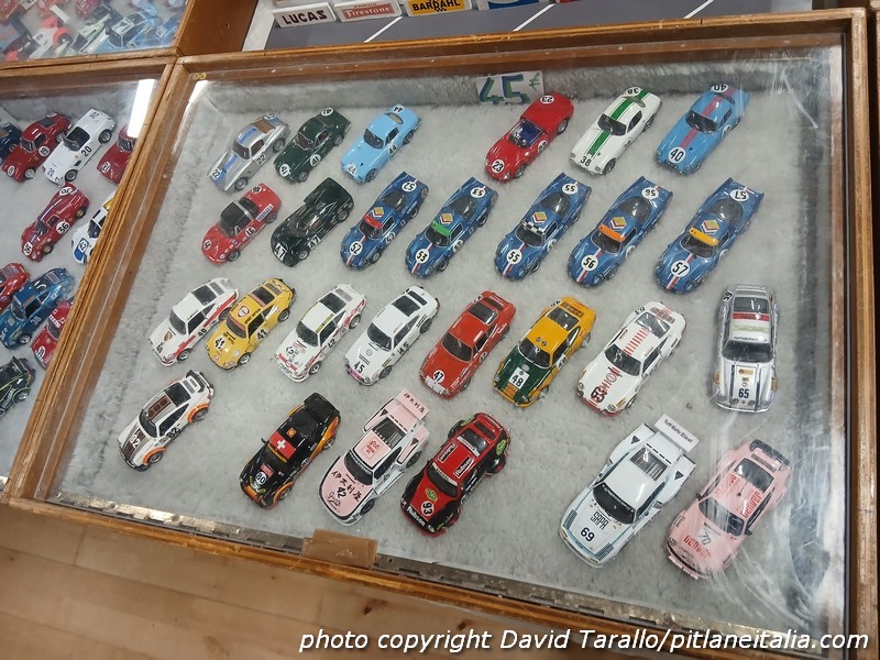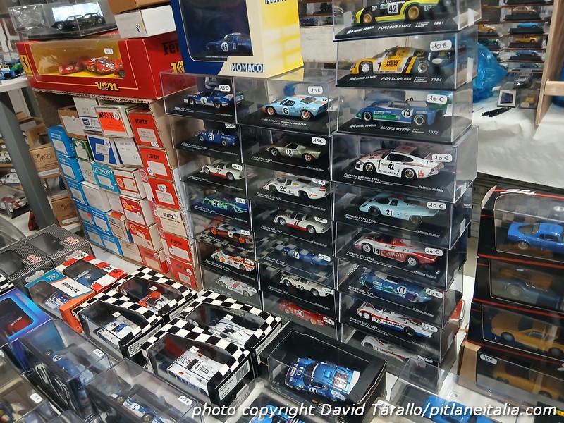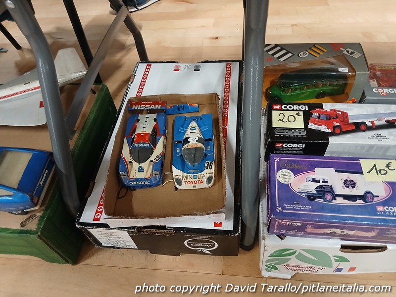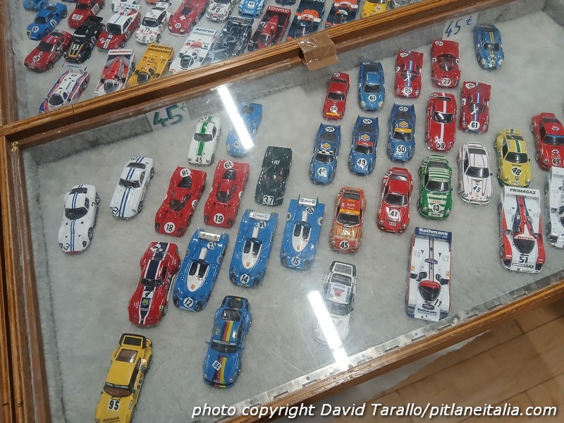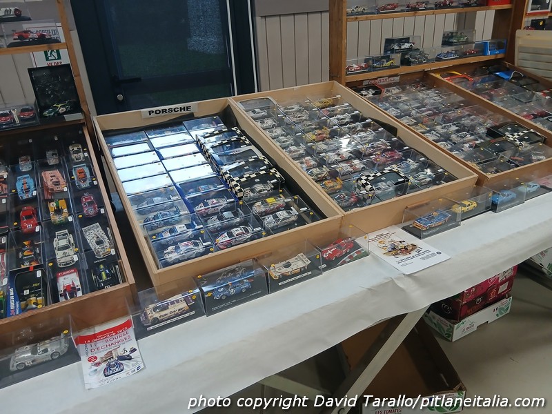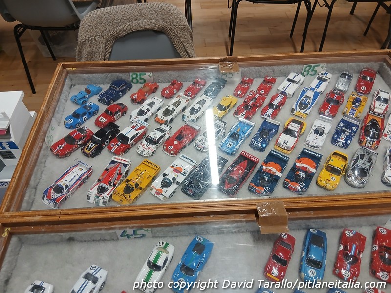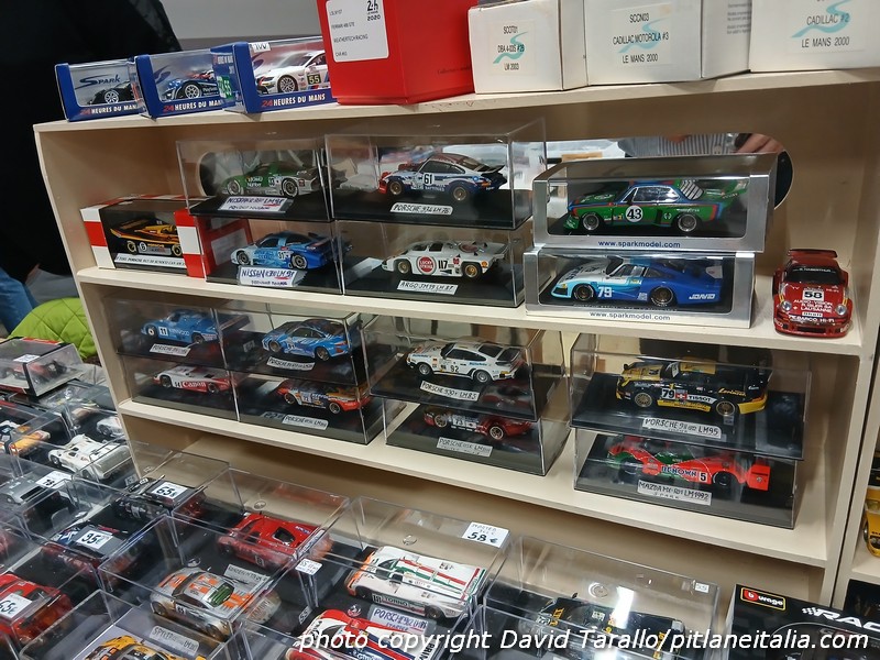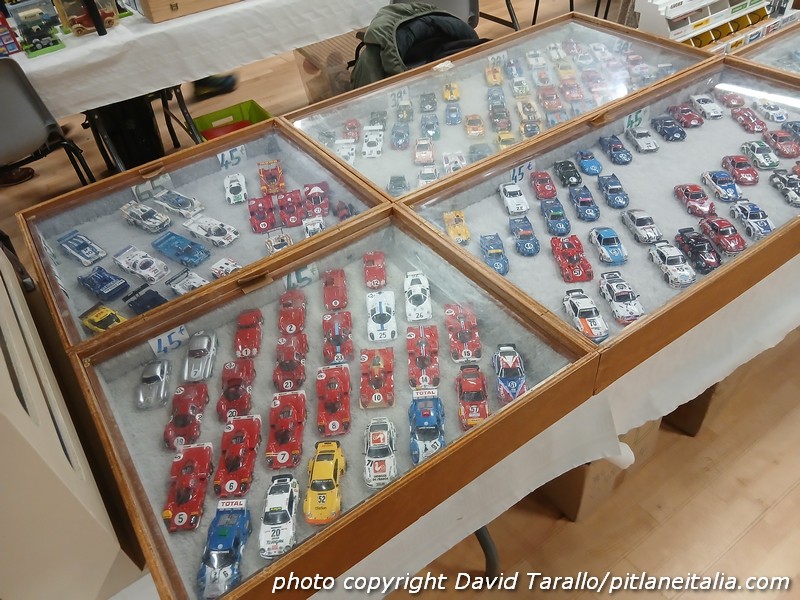 In manifestazioni come queste si respira un’aria diversa, a volte straniante se si è troppo abituati a produzioni contemporanee. A questo proposito, davvero pochissime le categorie che vanno per la maggiore in altri eventi: quasi nulla in 1:18, non tanti i modelli da edicola e tutto sommato limitata l’offerta di resincast in 1:43. Il collezionista di quelle zone è in parte un nostalgico o un estimatore di cose rare o poco conosciute. La 24 Ore di Le Mans è il tema principale e la fa quasi da padrone.