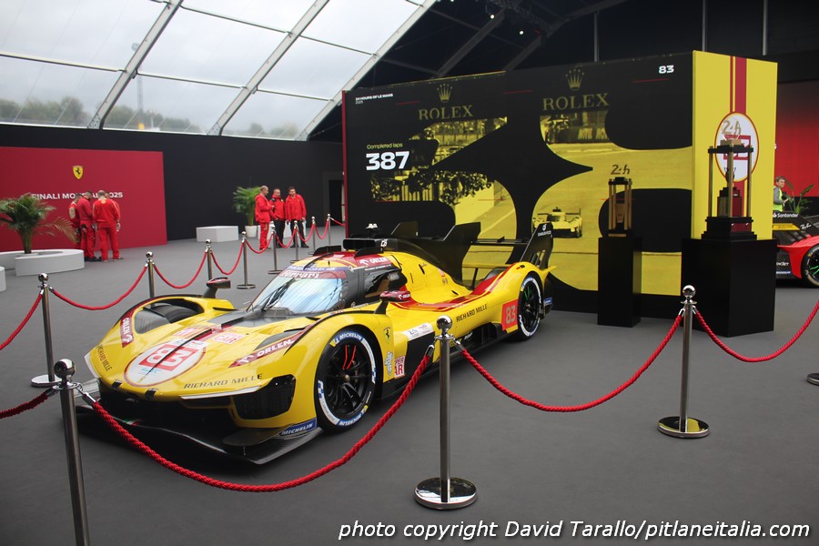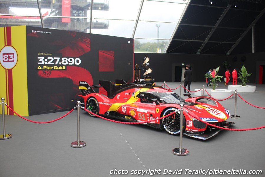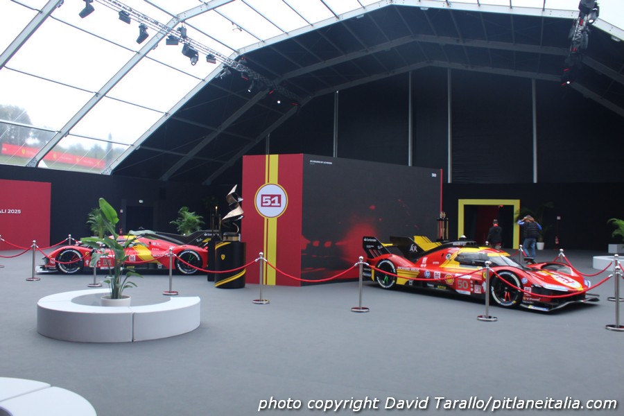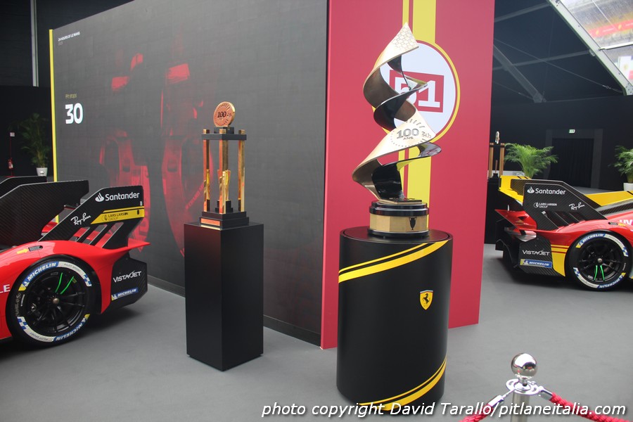 In occasione delle Finali Ferrari al Mugello, le tre 499P vincitrici fanno bella mostra di sé nello spazio che introduce al padiglione storico. Se siano quelle originali oppure no non è dato saperlo. Il colpo d’occhio, con tanto di trofei (incluso quello del centenario) è comunque notevole.