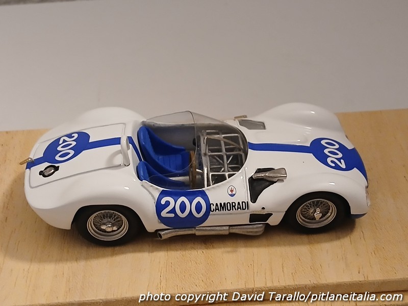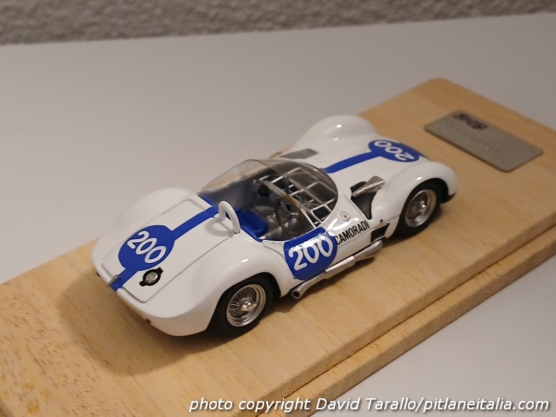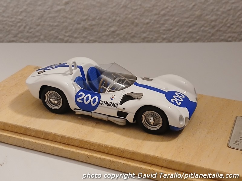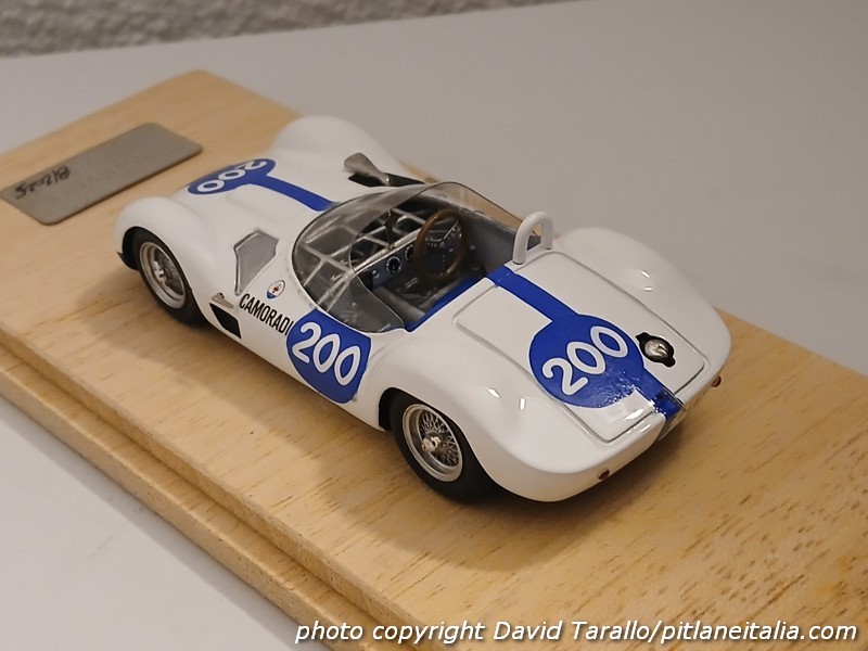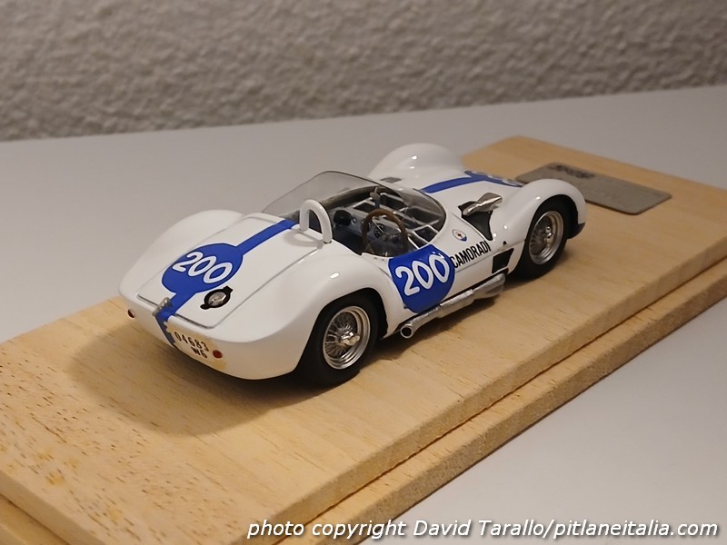 E’ inoltre disponibile un eccezionale montato su base AMR, la Maserati Birdcage Targa Florio 1960 (Maglioli/Vaccarella). Un solo esemplare per questa realizzazione molto dettagliata, montata con diversi dettagli aggiuntivi ma senza stravolgere lo spirito originario del kit. Il modello è montato su una base in legno con teca BBR.