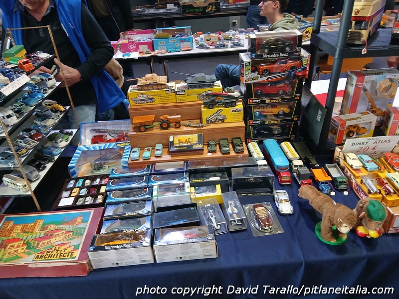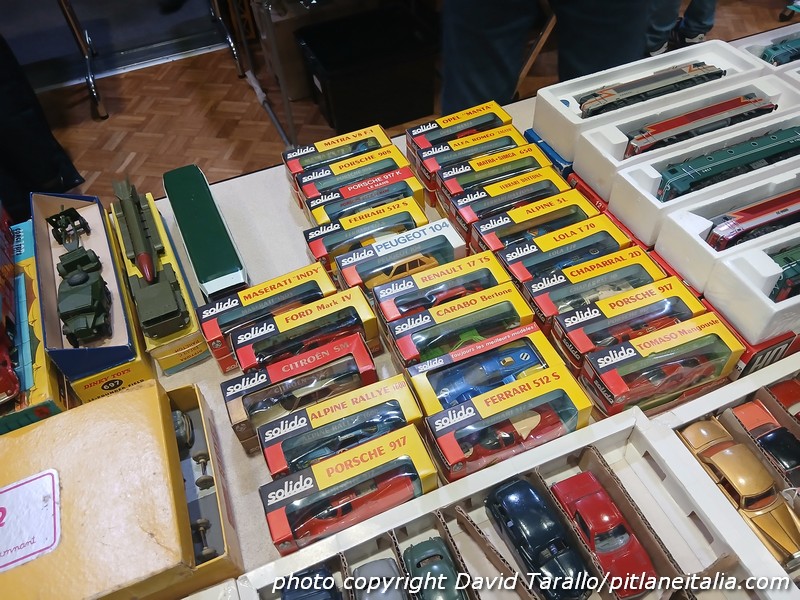 Arrivano anche specialisti da Parigi, e uno di loro, stamani, si distingueva per un bellissimo lotto di Solido della tarda serie 100, dove vi era anche una Ferrari 512S gialla, praticamente mai uscita dalla scatola. Questo venditore ha abitato a lungo vicino alla fabbrica Solido di Ivry-la-Bataille, dove ha potuto recuperare nel tempo varianti rare, errori di produzione, saggi di colore e così via.