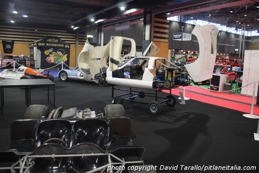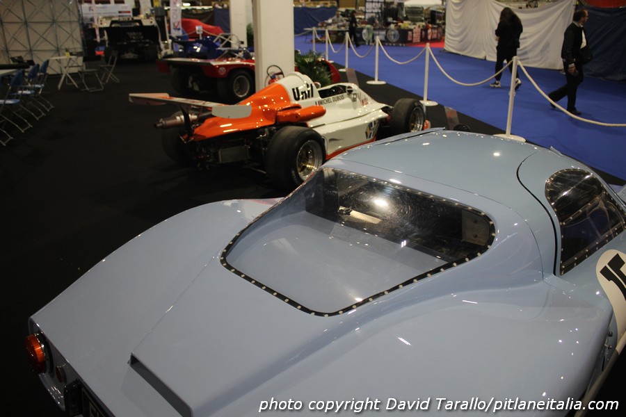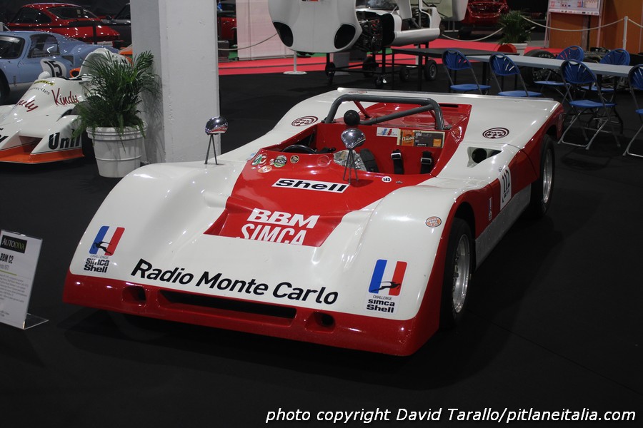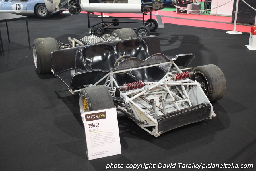 Quest’anno, Gérard Gamand, editore della rivista Autodiva, consacra il proprio stand di Epoqu’Auto a BBM (Bertin Boussu Mercier), costruttore francese di monoposto e sport tra il 1969 e il 1975. BBM è stato un marchio abbastanza prolifico e di successo, ottendendo il Challenge Simca nel 1972 e la Coupe Shell Simca nel 1973-1974, periodo in cui tutti i maggiori costruttori francesi di sport-prototipi erano impegnati nella serie Simca. “Le BBM – ricorda Gamand – erano vetture molto ben costruite, tecnicamente valide e anche con un buon senso dell’estetica”. Queste qualità sono visibili grazie alla retrospettiva lionese, che comprende dieci modelli, fra cui la C1 motorizzata Lamborghini V12 del 1971. Col suo chassis multitubolare, il propulsore V12 da 4 litri accoppiato a un cambio Hewland FG400, la vettura avrebbe dovuto inizialmente ricevere una motorizzazione Alfa Romeo per correre a Le Mans ma il progetto sfumò. Altro modello particolare è la GM1 del 1969, con telaio tubolare e sospensioni derivate dalla Renault R8. Equipaggiata con una motore Renault da 1300cc installato in posizione centrale, pesava solamente 800kg per una potenza di 140 cavalli. La trasmissione Renault proviene dall’Alpine pilotata da Bernard Collomb a Le Mans. Infine potremmo citare la C2 del 1972, con motore 2 litri Simca JRD (derivato dalla Chrysler 180) e cambio Hewland FT200. Questa è la vettura che vinse il Challenge Simca nel 1972 con Pascal Moisson.
