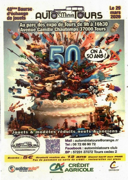 E’ programmata per il 29 marzo 2026 la 48ma edizione di AutoMiniaTours (parc des expo de Tours, Avenue Camille Chautemps), borsa di scambio riservata a modelli nuovi e antichi. Orario della manifestazione: 9-16.30. Per ulteriori informazioni: mail autominiatours@orange.fr, Facebook autominiatours club.