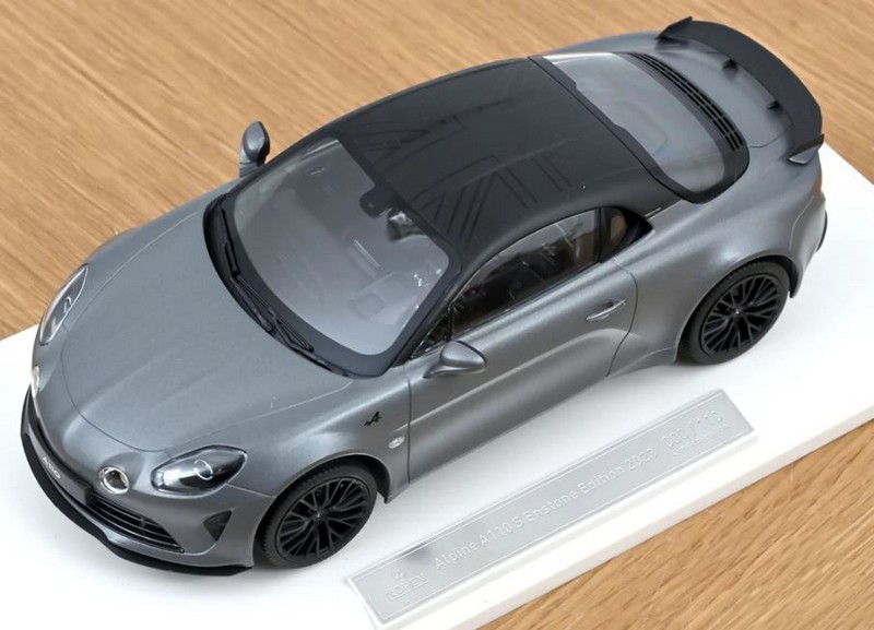 Due nuovi diecast in 1:18 si aggiungono alla nutrita serie delle edizioni excluweb realizzate da Norev. Col numero di catalogo 185431 esce l’Alpine A110 S Enstone Edition 2023 in Matt Thunder: questa particolare versione, prodotta in soli 300 esemplari in due grigi a scelta, celebra l’attività dei centri tecnologici di Enstone in Gran Bretagna e di Dieppe, impegnati nel programma BWT Alpine F1 Team. La Union Jack, in onore di Enstone, campeggia sul tetto della vettura, che monta cerchi da 18″ in nero opaco con pinze freni Brembo di color argento. Il modello è in edizione limitata a 110 esemplari numerati.