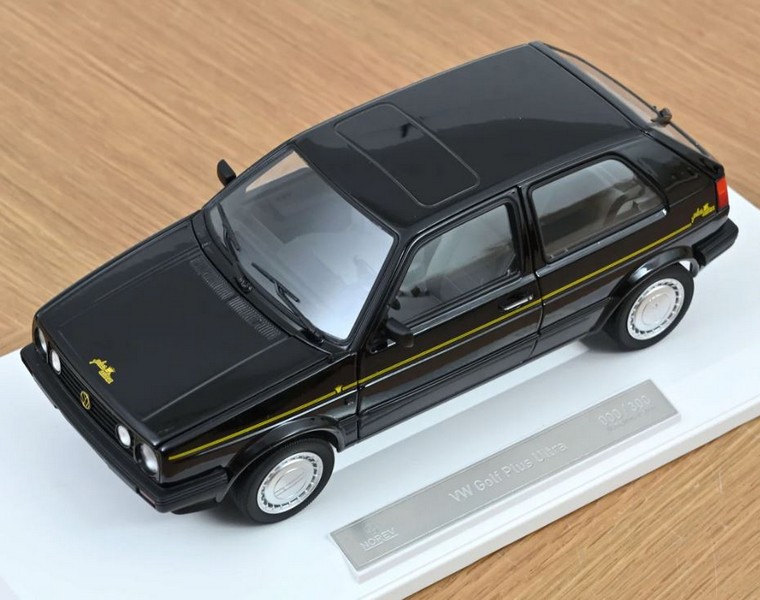 Secondo modello del lotto, la VW Golf II serie nell’edizione speciale Plus Ultra, diffusa nel 1990. La vettura si contraddistingueva per una livrea specifica e per una ricca dotazione di serie. Numero di catalogo 188565, edizione limitata a 300 pezzi numerati.