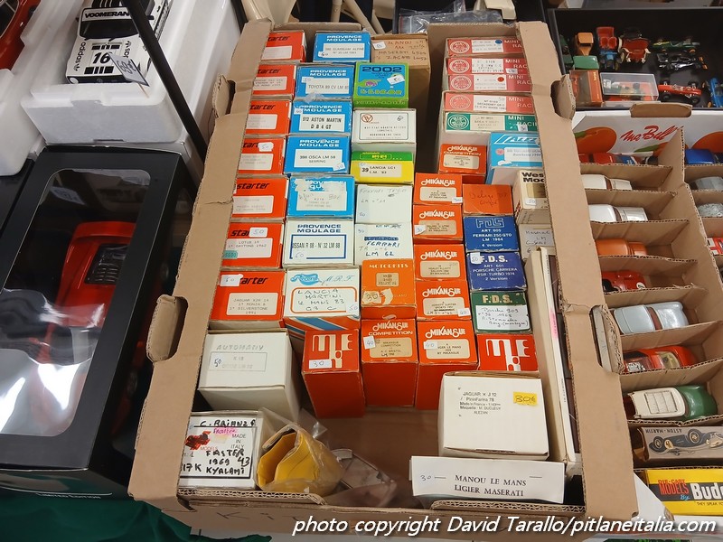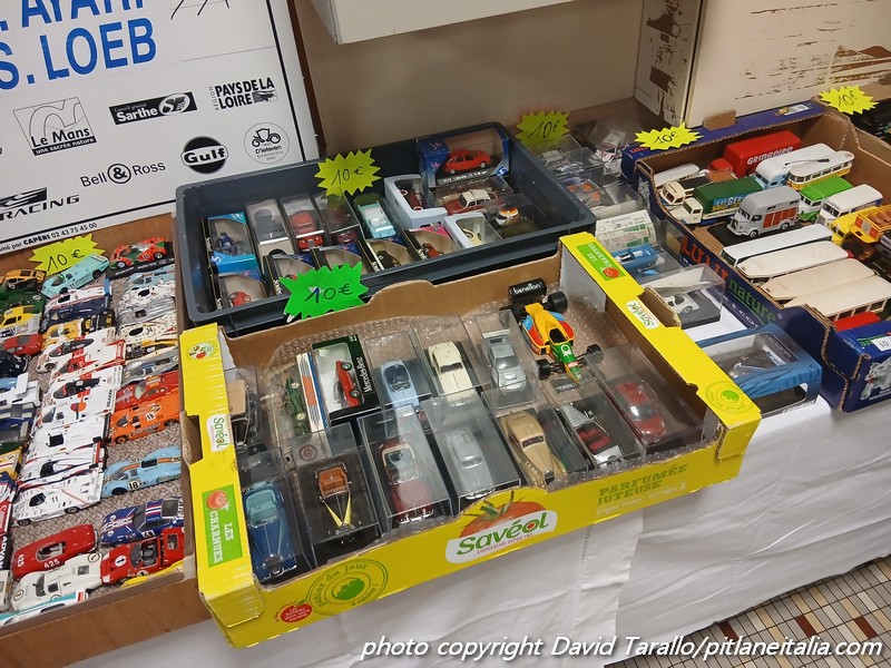 Effettivamente hanno ragione quelli che affermano che le borse nella zona di Le Mans fanno storia a parte, tanta è stata l’attività modellistica e la passione dei collezionisti in decenni di sviluppo dell’automodellismo. Qui si sono accumulati (e, fortunatamente sono stati montati) migliaia di kit, incluse rare trasformazioni.