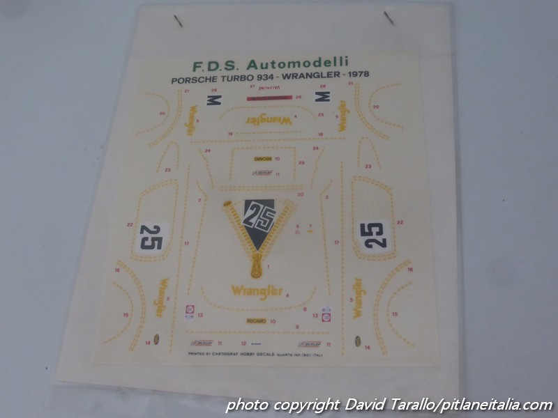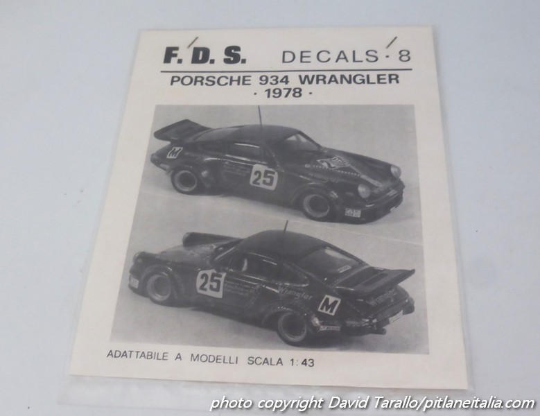 Queste raffinate bustine FDS, che sono piacevoli ancora oggi, nascevano in parte dall’esigenza di smaltire le cospicue scorte che la Cartograf e tutti gli altri tipografi specializzati imponevano per ogni impianto. L’idea era intelligente e funzionò abbastanza: in questa serie, che si affiancava ad altre decals generiche, si trovavano fogli già visti nei kit, come la Porsche 934 Wrangler 1978, una bella versione che molti realizzarono su base Solido, facendo volentieri a meno dell’originale in metallo bianco.