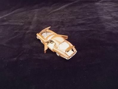 Il fondino di un modellino. Si nota il buco del fermo a molla che lo fissava alla scatola di cartone (altri modelli utilizzavano delle fascette) e la vite che tiene insieme la parte superiore e inferiore del modello, caratteristica comune a quasi tutti