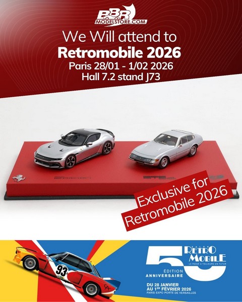 Per Rétromobile 2026, BBR ha preparato uno speciale set 1:43 in edizione limitata a 36 esemplari, comprendente una Ferrari 365 GTB/4 Daytona e una 12Cilindri Coupé in Argento Nurburgring.