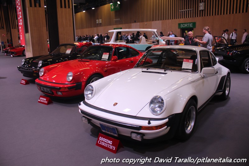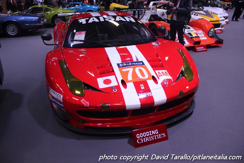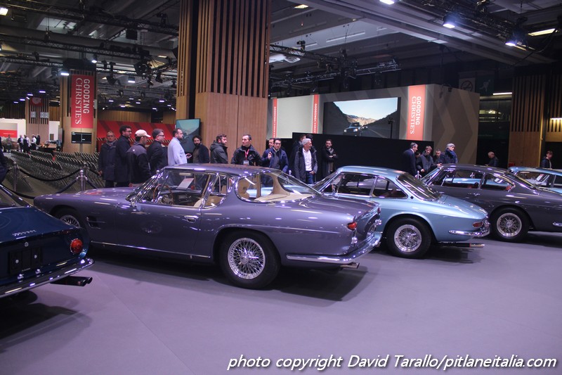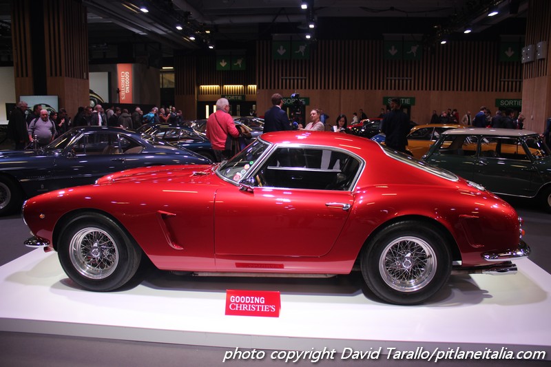 Nuovo partner di Rétromobile, Gooding Christie’s ha portato a Parigi una novantina di vetture in vendita all’asta: Ferrari, Lamborghini, Alfa Romeo, Lancia, BMW, in rappresentanza di un’importante parte di storia del Gran Turismo. Una delle star dell’area di Gooding Christie’s è la Ferrari 250 GT SWB telaio 2177GT, prodotta nel 1960 in configurazione “semi-competizione”, con la carrozzeria in acciaio e porte in alluminio. Arrivata negli Stati Uniti nel 1960, la vettura partecipò ad alcune competizioni. Notevoli anche la Ferrari 250 GT California LWB telaio 0923GT, una delle trentotto con i fari carenati, la Ferrari 400 Superamerica prima serie (solo quattordici unità prodotte) e uno dei migliori esemplari esistenti della Ferrari 288 GTO, con solo 1500km percorsi dal 1984. Aggiungiamo una 333 SP in livrea Momo.