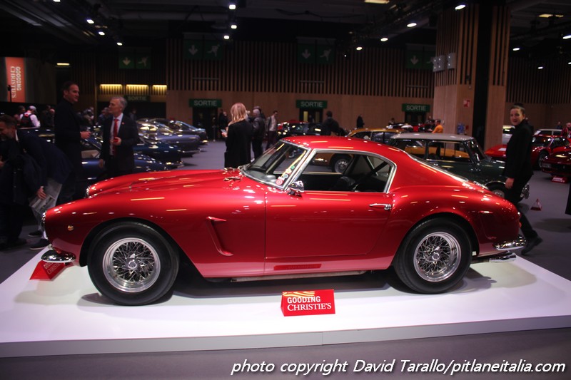 Nuovo partner di Rétromobile, Gooding Christie’s ha portato a Parigi una novantina di vetture in vendita all’asta: Ferrari, Lamborghini, Alfa Romeo, Lancia, BMW, in rappresentanza di un’importante parte di storia del Gran Turismo. Una delle star dell’area di Gooding Christie’s è la Ferrari 250 GT SWB telaio 2177GT, prodotta nel 1960 in configurazione “semi-competizione”, con la carrozzeria in acciaio e porte in alluminio. Arrivata negli Stati Uniti nel 1960, la vettura partecipò ad alcune competizioni. Notevoli anche la Ferrari 250 GT California LWB telaio 0923GT, una delle trentotto con i fari carenati, la Ferrari 400 Superamerica prima serie (solo quattordici unità prodotte) e uno dei migliori esemplari esistenti della Ferrari 288 GTO, con solo 1500km percorsi dal 1984. Aggiungiamo una 333 SP in livrea Momo.