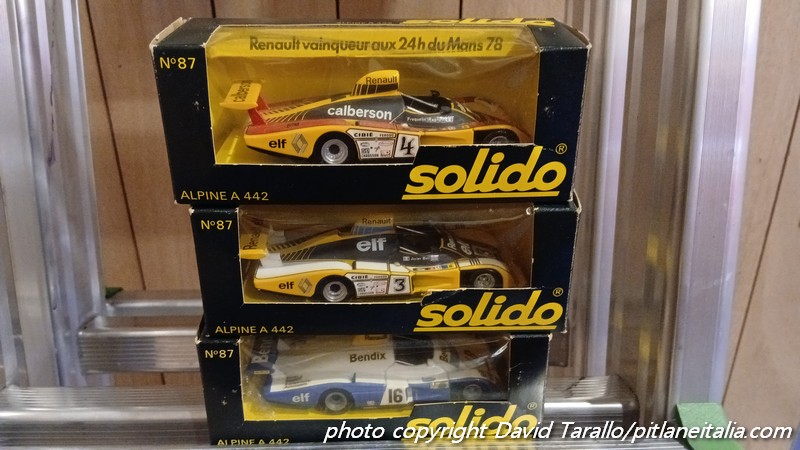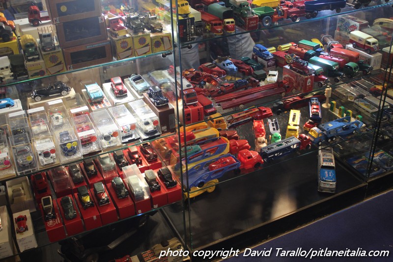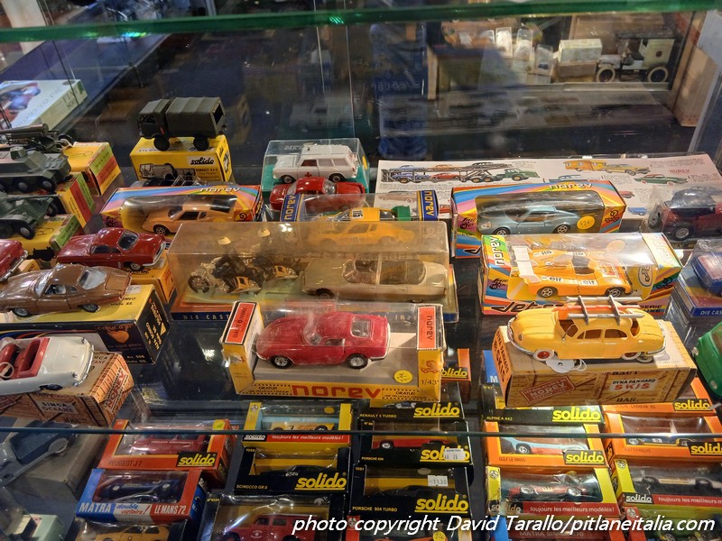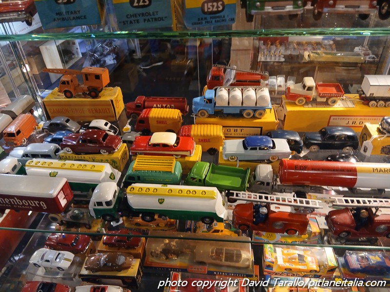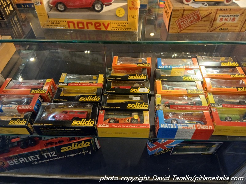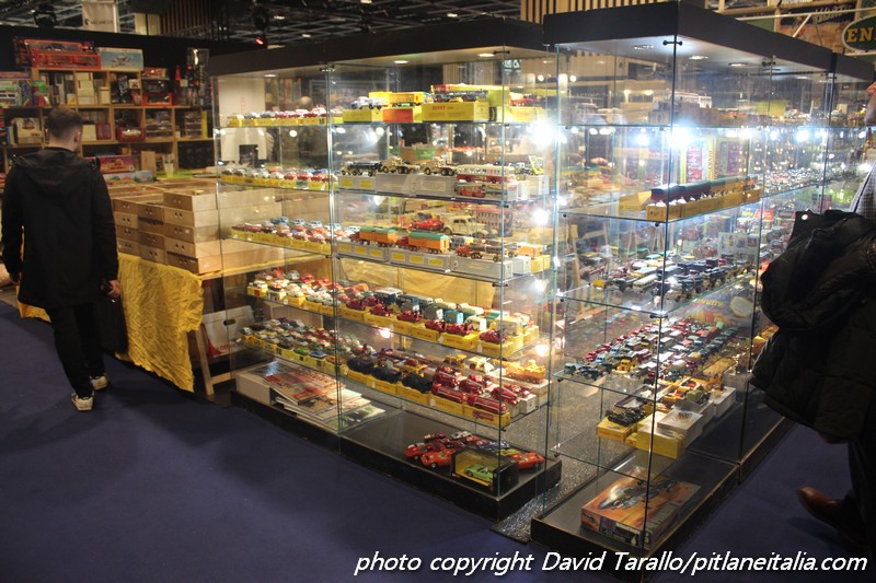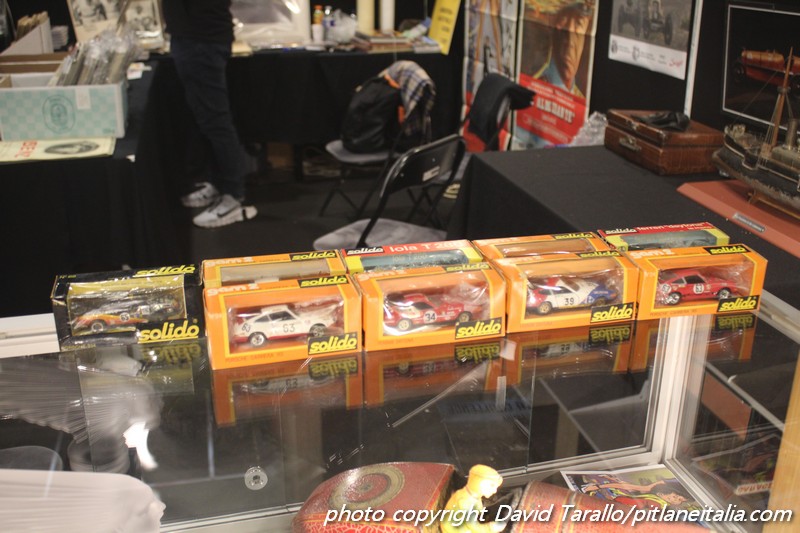Storicamente, Rétromobile non è il luogo degli obsoleti. Certo, alcuni espositori come la Galerie du Jouet Ancien, continuano a puntare sulla manifestazione con spazi imponenti e costosi. Evidentemente hanno il loro tornaconto. Come al solito, molti Dinky e a prezzi più che onesti. Al di fuori dello spazio della Galerie, si trovavano alcuni lotti di Solido serie 10, Norev, Tekno e così via. Interessante una collezione di un venditore francese presso lo stand di uno specialista di memorabilia argentino, che proponeva (immagini qui sotto) una selezione di una trentina di Solido di Le Mans elaborati fra gli anni ’80 e ’90, sullo stile di quelli di Bruno Allinand.