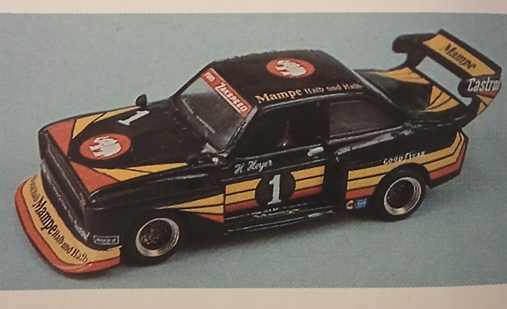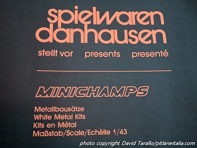 - E’ quasi inutile ricordarlo ma repetita iuvant: Minichamps fu un marchio che i fratelli Lang avevano inventato nel 1976, riservato a kit in metallo bianco su soggetti d’attualità: il primo modello fu la Porsche 917/20 Interserie, cui seguirono la Ford Escort Mk.I Zakspeed-Castrol Gr.2 e la BMW 2002 Gr.2 Europa Möbel. ↩︎