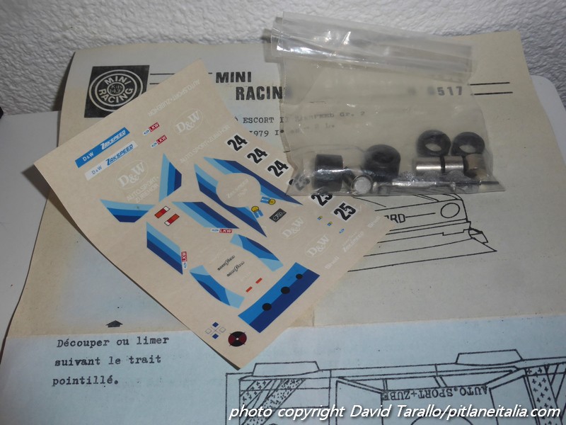 Le Ford Escort II di Minichamps non erano dei veri e propri kit completi: la carrozzeria era infatti quella del Solido numero 45, non verniciato, cui si aggiungevano i pezzi per la trasformazione della carrozzeria, un nuovo fondino e tutto l’occorrente per gli interni e per le ruote da competizione, tornite con inserti centrali (all’epoca erano già tanto e se montate e dipinte a modino, potevano fare la loro figura).