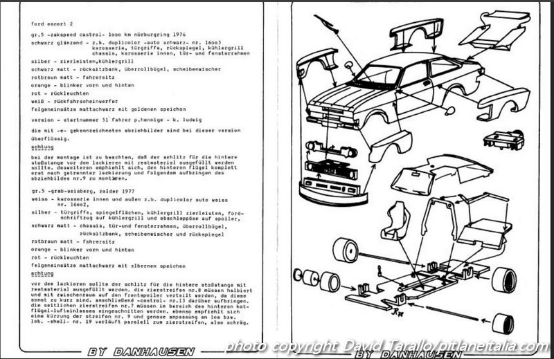 Nel corso del 1977, Danhausen commercializzò, nella gamma Minichamps2, un gruppo di nuovi kit fra i quali un paio di versioni della Escort II Zakspeed Gruppo 2 che avevano corso nel DRM 1976 (la Castrol e l’Europa Möbel, rispettivamente numero di catalogo 7 e 8)3 e la Castrol Gruppo 5 (numero di catalogo 9).