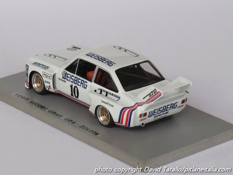 Insieme alla Fiat 131 Abarth, alla Lancia Stratos e alla Porsche Carrera RS, la Ford Escort Mk.II di Solido1 resta uno dei pilastri su cui si fonda la storia dei transkit e dei variokit in 1:43. Innumerevoli sono le versioni da rally tirate fuori dai vari Tron, GC Hobby e compagnia, ma come la prima, anche la seconda Escort, in versione RS1800, conobbe una lunga e vittoriosa carriera sportiva in pista, dal semplice Gruppo 1 al Gruppo 2 fino alla configurazione Silhouette Gruppo 5. Inutile in questa sede cercare di ripercorrere una storia che ci porterebbe troppo lontano.