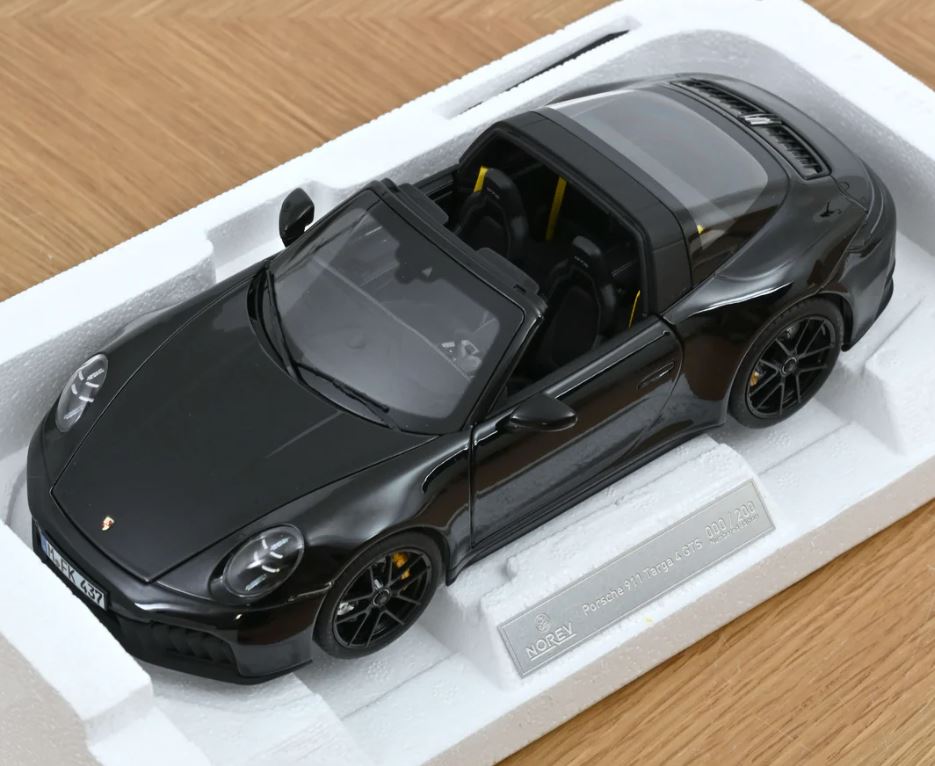 Porsche 911 Targa 4 GTS (2025) in nero, numero di catalogo 187191, edizione in 200 pezzi numerati