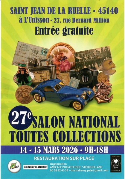 Si svolge il 14 e il 15 marzo la 27ma edizione del Salon National Toutes Collections a Sant Jean de la Ruelle (Francia), presso l’Unisson, 27 rue Bernard Million. Orario 9-18 entrambi i giorni.