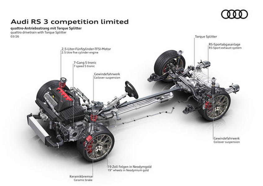 Il prezzo base in Germania è di 108.365 euro per la Sportback e 110.005 euro per la Sedan. Le consegne europee della RS 3 competition limited inizieranno a metà 2026.