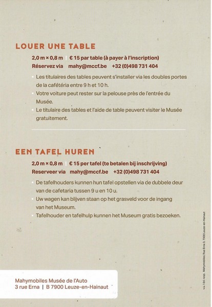 Si svolgerà sabato 9 maggio 2026 con orario 10-16 la quinta edizione della Borsa di scambio a Leuze-en-Hainaut, presso il Mahymobiles Musée de l’Auto (3 rue Erna). Il biglietto di ingresso comprende la visita al museo.