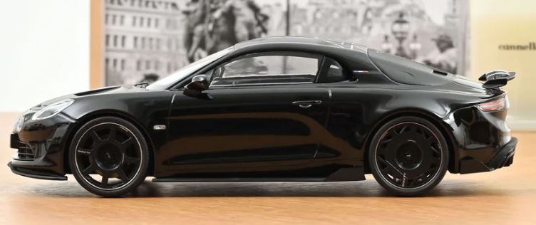 La seconda proposta è la A110 S Kit Aéro 2025, rifinita nella livrea Noir Carbone Mat. Il modello (catalogo 185445) è anch’esso limitato a 110 esemplari numerati individualmente.