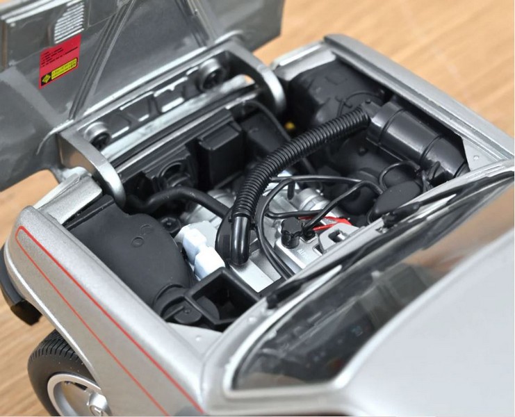 Il modello Norev (catalogo 185264) riproduce la configurazione del 1978 con carrozzeria color argento e una cura dei dettagli coerente con la fascia collezionistica del marchio. Tra gli elementi riprodotti figurano i cerchi in lega specifici (a “bobina”), gli interni con sedili anteriori monoblocco reclinabili, cofano motore e portiere apribili, oltre alle ruote anteriori sterzanti.