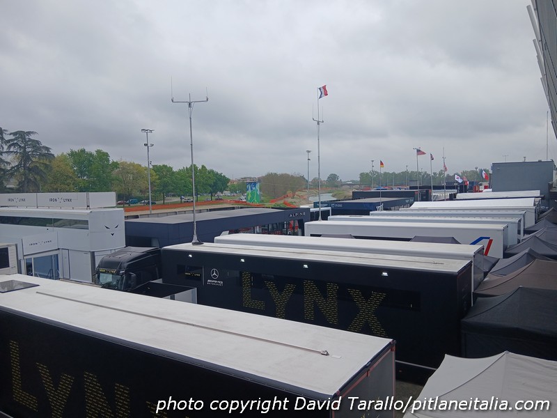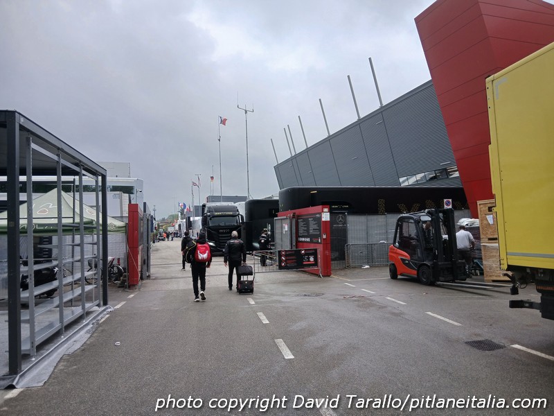 La particolare posizione di Imola non facilita le cose: tutto deve essere programmato ed eseguito in anticipo, comprese le operazioni di ritiro dei vari accrediti, pass parcheggio, tabard track (o pitlane) e così via. Tra una cosa e l’altra – se tutto va come deve andare – parte una mattinata.