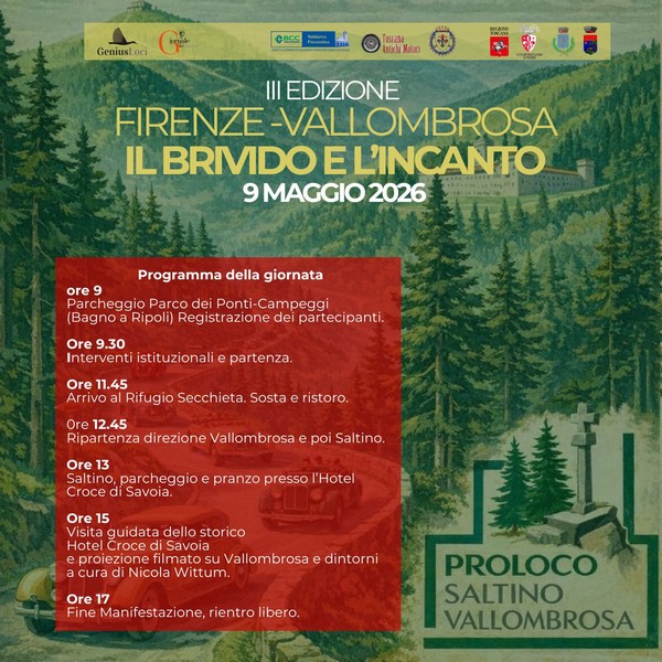 E’ in calendario la terza edizione della Firenze-Vallombrosa che si svolgerà il prossimo sabato 9 maggio, promossa dalla Pro Loco Saltino Vallombrosa con il patrocinio del Comune di Reggello e del Comune di Bagno a Ripoli.