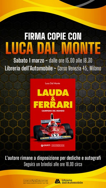 Lauda & Ferrari: firma copie con Luca Dal Monte